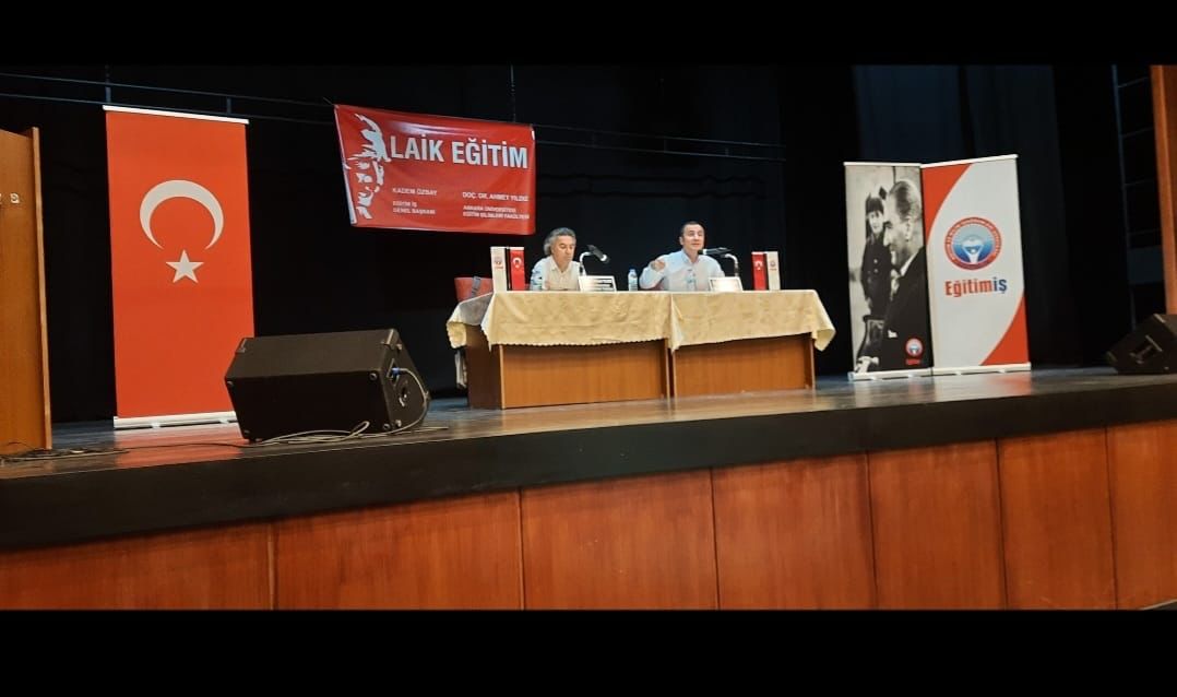 Ankara Üniversitesi Eğitim Bilimleri Fakültesi Doç. Dr. Ahmet Yıldız’ın da konuşmacı olarak katıldığı panelde Laik Eğitim konusunda değerlendirmelerde bulunan Eğitim-İş Sendikası Genel Başkanı Kadem Özbay konuyla ilgili katılımcılarında sorularını da yanıtladı.