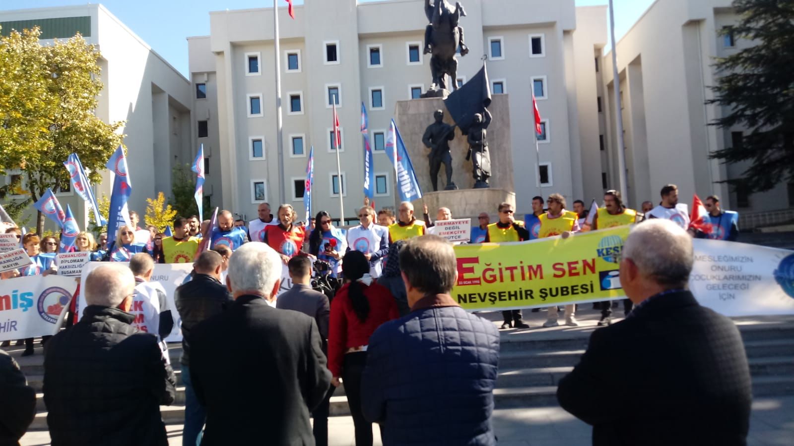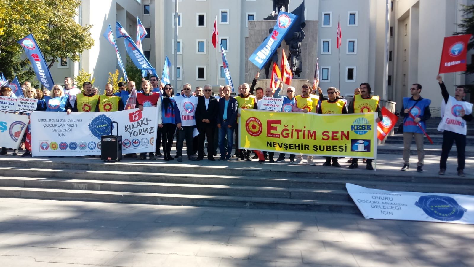 Eğitim-İş Sendikası Nevşehir Şube Başkanlığı ile Eğitim-Sen İl Temsilciliği ortaklaşa düzenledikleri basın açıklamasıyla iş bırakma eyleminin nedenlerini açıkladı.