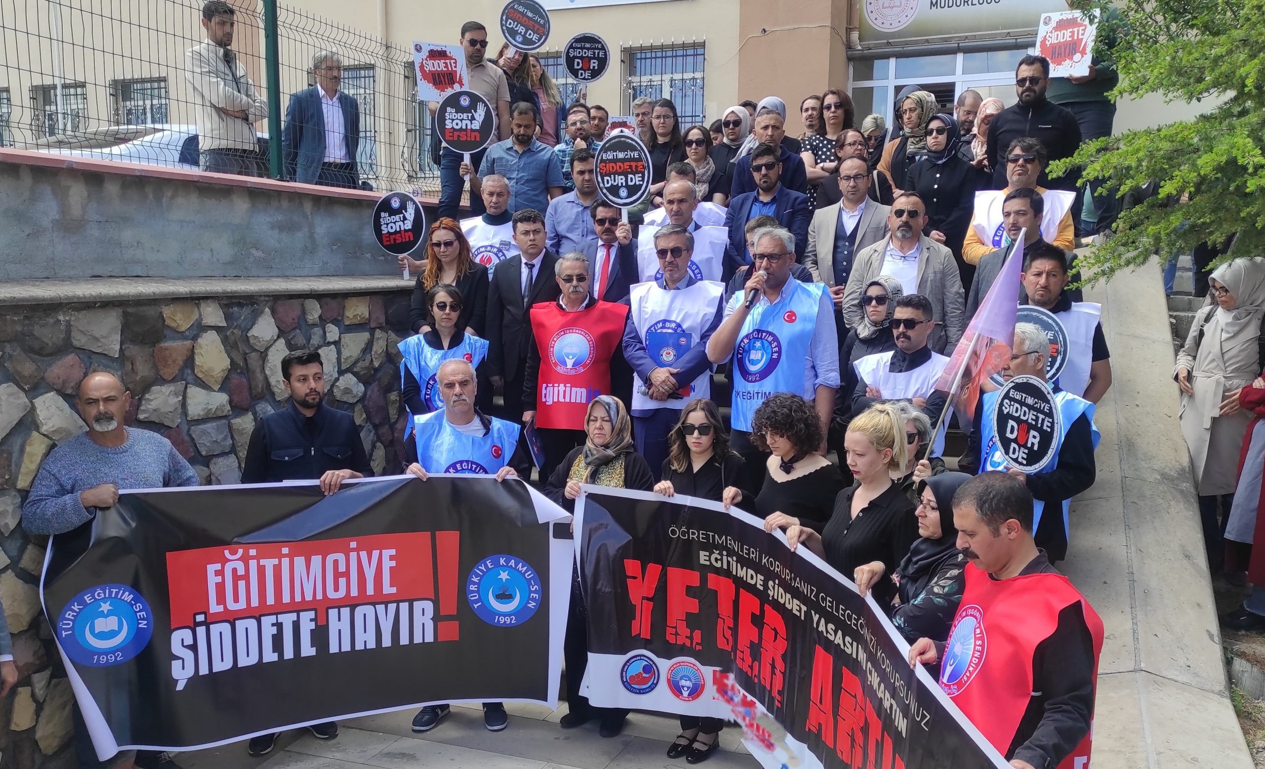 Bugün bir şahsın okulun 2.katına kadar çıkarak Öğretmenlerimize yönelik menfur saldırı gerçekleştirme cesaretini gösterebiliyorsa bunun altında yıllardır öğretmenin itibarsızlaştırılması yatmaktadır. Bu menfur darp ve saldırı olayını telin ediyor, bu ve benzeri olayların tekrar vuku bulmaması için eğitimde şiddet yasasının eğitim çalışanlarını koruyan boyutta iyileştirilmesini, eğitim çalışanlarına yönelik şiddette cezaların 2 katına çıkarılmasını, cezaların ağırlaştırılmasını ve okullarımıza güvenlik görevlisi tahsis edilmesini, okullara veli ve vatandaşların girişleri kontrol altına alınmalıdır. Talep ediyoruz. Menfur saldırıya uğrayan meslektaşlarımızın yanında olduğumuzu belirtiriz. Ayrıca meslektaşlarımıza her türlü hukuki destek verilecektir. Bu menfur olay ülkemizde eğitim çalışanlarına yönelik yaşanan son saldırı, son şiddet olayı olur. Tüm kamu bürokrasisini de bu olaylara tedbir alması için göreve davet ediyoruz. Katılımlarından dolayı tüm meslektaşlarımıza, eğitim çalışanlarına teşekkür ederiz.”