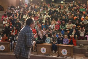 Televizyon ekranlarından izledikleri sevilen karakterleri izlemek için Kapadokya Kültür ve Sanat Merkezi’ne gelen çocuklarla bir araya gelip sevinç ve heyecanlarını paylaşan Nevşehir Belediye Başkanı Dr. Mehmet Savran çocuklarla birlikte fotoğraf çektirdi.