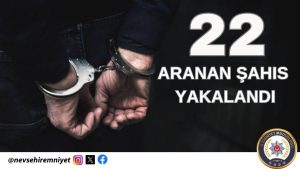 Nevşehir Emniyet Müdürlüğü Ekiplerince son bir hafta içerisinde ilimiz genelinde aranan şahısların yakalanmasına yönelik yapılan çalışmalarda 22 kişi gözaltına alındı.