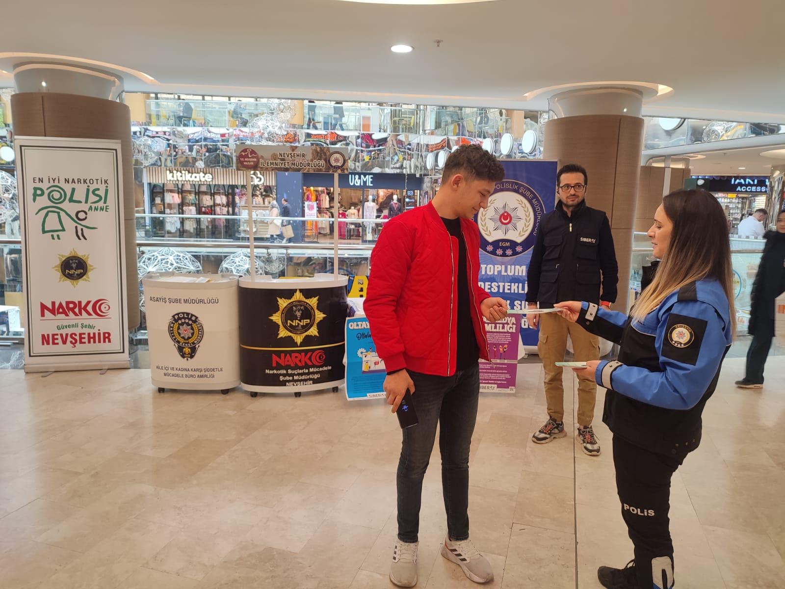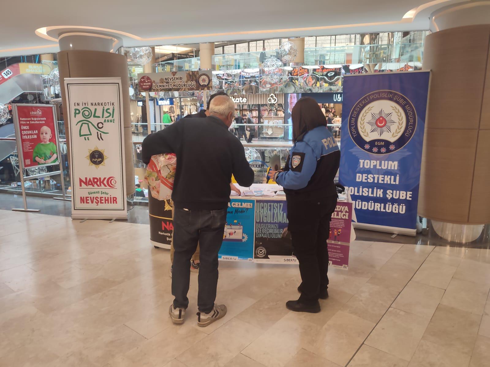 Türk Polis Teşkilatının 179. Yılı münasebetiyle yapılan faaliyetler kapsamında Nevşehirli vatandaşlar dolandırıcılara karşı uyarıldı. Nevşehir Emniyet Müdürlüğü personelince vatandaşların yoğun olduğu yerlerde “DOLANDIRICILIK, KADES, SİBERAY ve UYUMA konularında broşür dağıtılırken vatandaşların duyarlı ve dikkatli olunması istenerek bilgilendirme yapıldı.