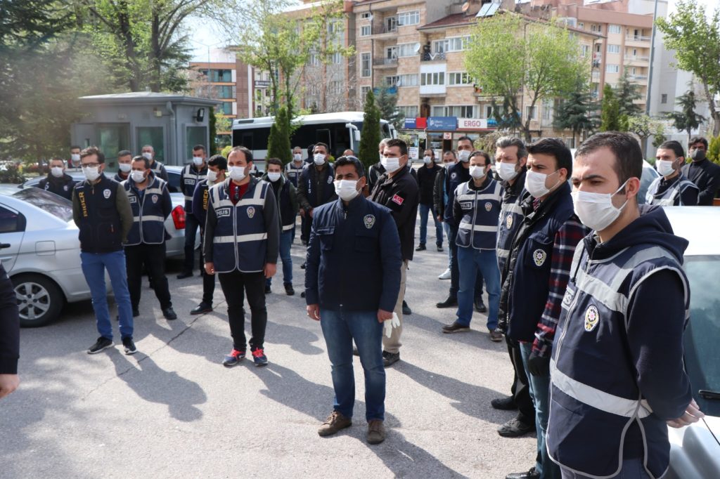 İl Emniyet Müdürlüğü önünde denetime katılan polis memurlarına hitap eden Emniyet Müdürü Mehmet Artunay, “Kovid-19 ile ilgili çeşitli çalışmalar yapıyoruz.