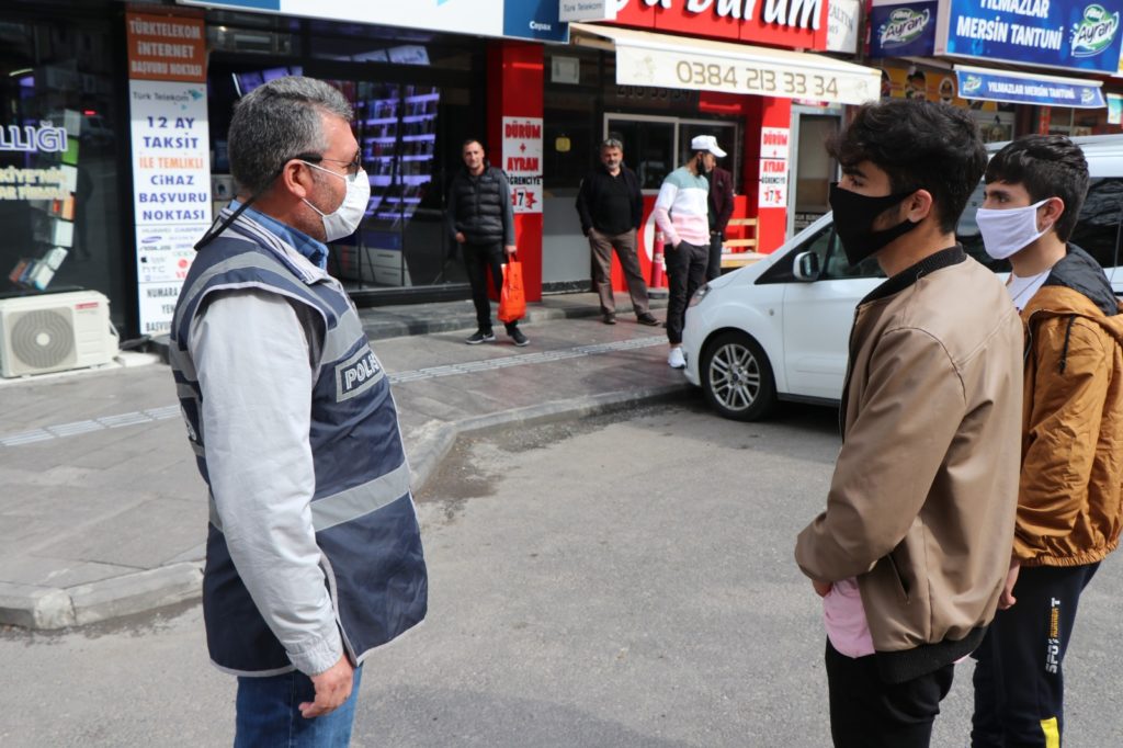 Emniyet Müdürü Mehmet Artunay’ın konuşmasının ardından polis ekipleri denetimlere çıkarken İl Emniyet Müdürü Mehmet Artunay’da esnafları maske konusunda uyarmasının yanı sıra çarşıda karşılaştığı vatandaşları ise maske ve sosyal mesafe konusunda uyarılarda bulundu.