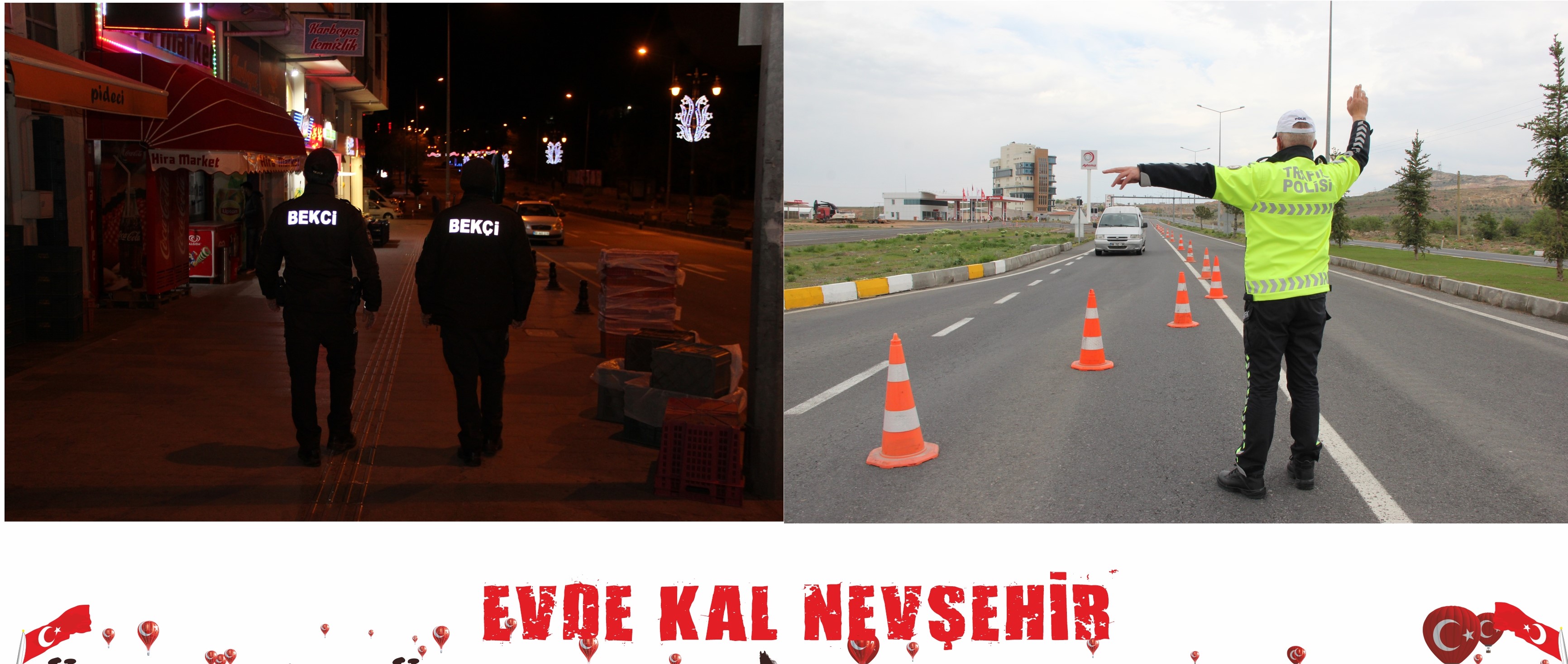 Nevşehir’de korona virüse karşı alınanan tedbirler kapsamında İl Emniyet Müdürlüğü tarafından esnaflar denetlenirken 65 yaş üstü ve 20 yaş altı sokağa çıkma yasağı kontrollerinin yanı sıra vatandaşlar sosyal mesafe konusunda da uyarıldı.