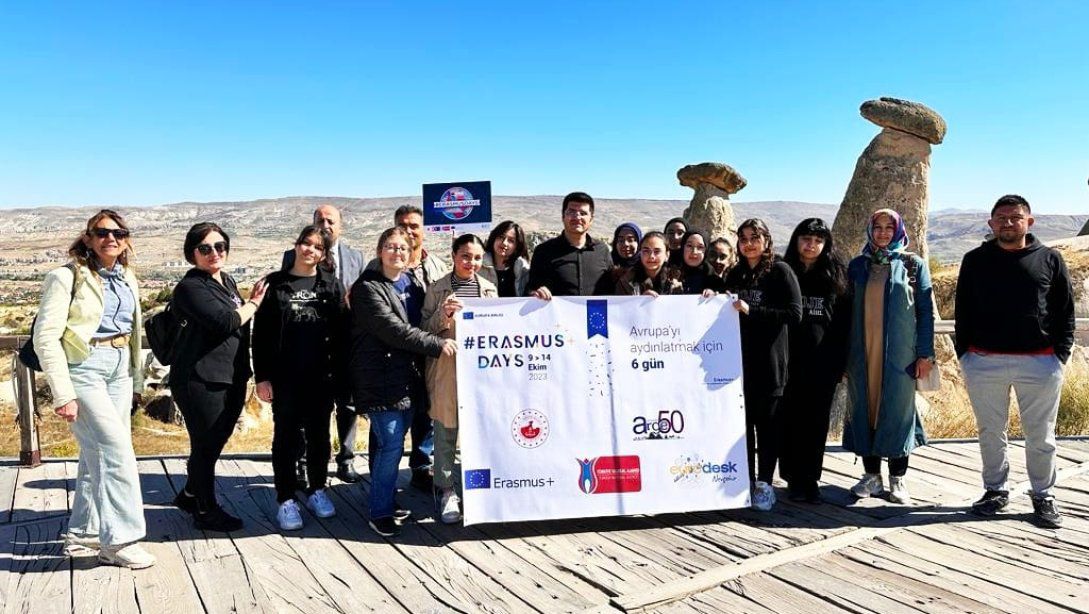 Bu sene ‘Avrupa’yı Aydınlatmak İçin 6 Gün’ sloganıyla 9-14 Ekim tarihleri arasında kutlamaları devam eden #ErasmusDays kapsamında Nevşehir İl Milli Eğitim Müdürlüğü Ar-Ge birimi ve Eurodesk Nevşehir irtibat bürosu tarafından düzenlenen etkinlikte, ilimiz okullarında öğrenim gören Erasmus gönüllüsü gençler ve Erasmus+ projesi sebebiyle Gülşehir ilçesinde bulunan Polonya ve Yunanistan’dan gelen misafir öğretmen ve öğrencilere yönelik Big-Bus Kapadokya turu düzenlendi.