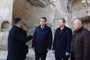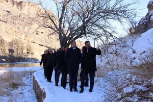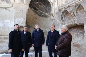 Kapadokya Alan Başkanı Cem Aslanbay, Yeşilhisar Kaymakamı Fatih Adıgüzel, Kayseri İl Kültür ve Turizm Müdürü Doç. Dr. Şükrü Dursun ve Yeşilhisar Belediye Başkanı Halit Taşyapan ile birlikte Erdemli Vadisi ve vadide yer alan Saray Manastırı’nda incelemelerde bulundu.