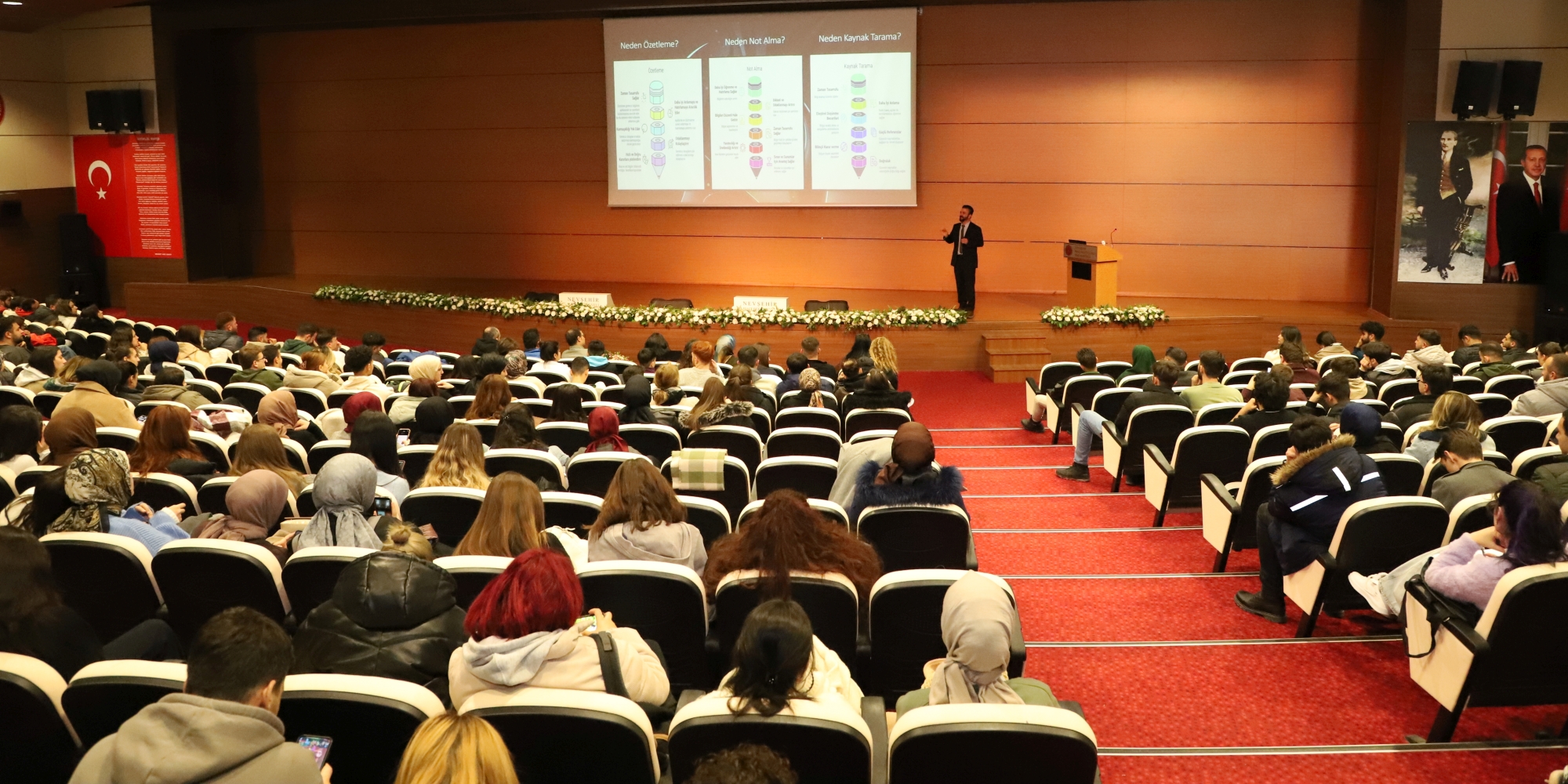 Nevşehir Hacı Bektaş Veli Üniversitesi (NEVÜ) Kariyer Planlama Uygulama ve Araştırma Merkezi (NÜKMER) tarafından düzenlenen “Öğrenci Gelişim Seminerleri” kapsamında Eğitim Fakültesi öğretim üyesi Doç. Dr. Ahmet Demirel, öğrencilere “Etkili Özet Çıkarma, Not Alma ve Kaynak Tarama Yöntemleri” konulu seminer verdi.