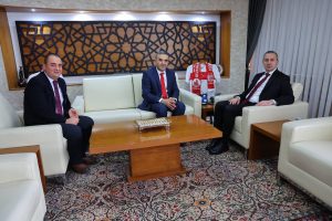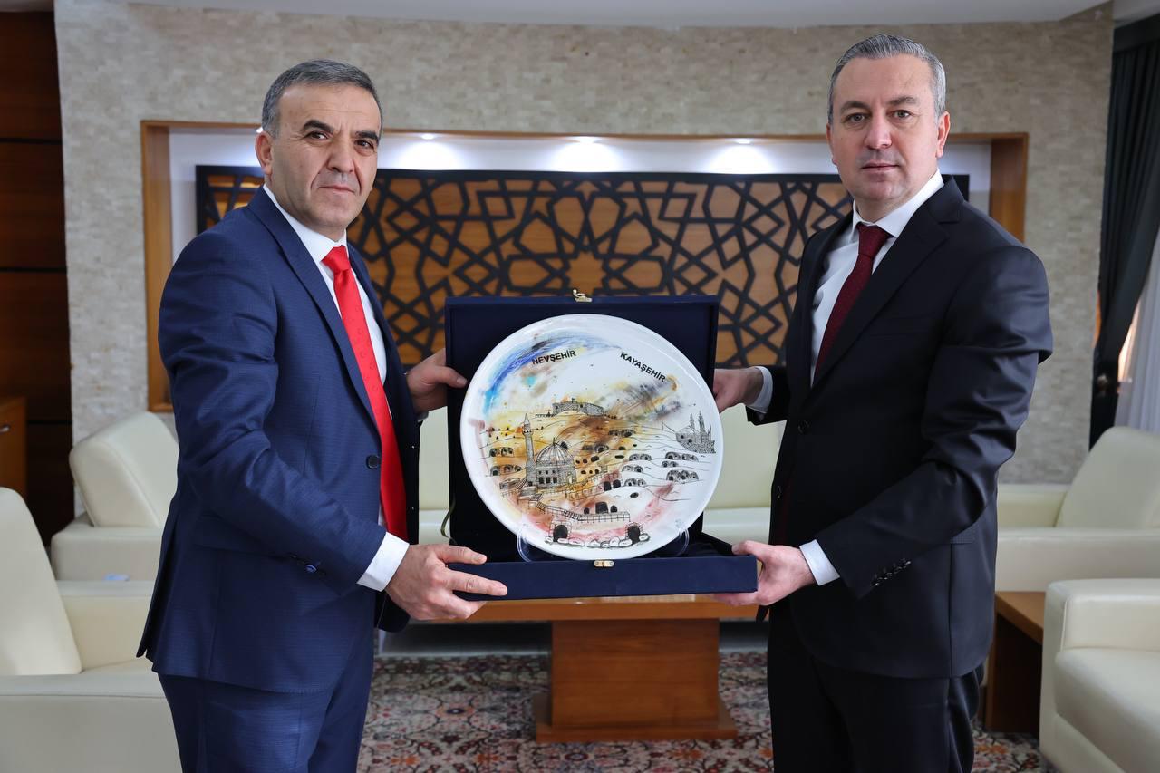 Türkiye Evlendirme Memurları Grubunun Başkanlığını da yapan Ertuğrul Usta anma programından sonra Nevşehir Belediye Başkanı Rasim Arı’nın hediyelerini takdim etmek üzere Sivas Belediye Başkanı Dr. Âdem Uzun’u makamında ziyaret ederek bir süre sohbet etti.