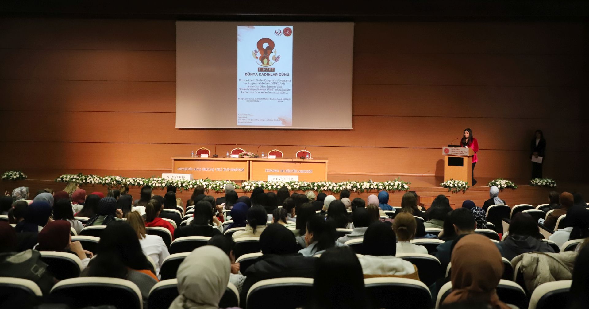 Nevşehir Hacı Bektaş Veli Üniversitesi (NEVÜ) Kadın Çalışmaları Uygulama ve Araştırma Merkezi (NÜKÇAM) koordinatörlüğünde 8 Mart Dünya Kadınlar Günü ‘Farklı Disiplinlerin Perspektifinden Kadın’ konulu panel düzenlendi.