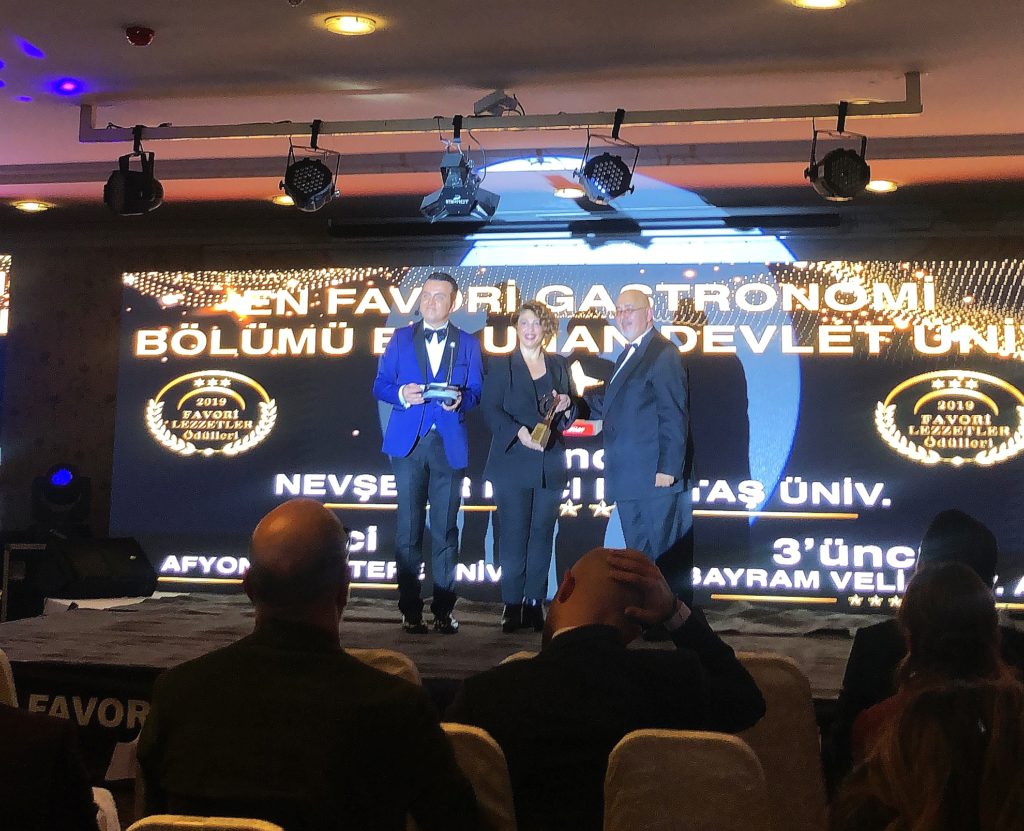 Nevşehir Hacı Bektaş Veli Üniversitesi (NEVÜ) ‘En Favori Gastronomi Bölümü Bulunan Devlet Üniversitesi’ kategorisinde tüm rakiplerinin önüne geçerek birinci oldu. NEVÜ adına ödülü almak üzere ödül törenine Turizm Fakültesi Dekanı Prof. Dr. Şule Aydın ve Gastronomi Bölüm Başkanı Doç. Dr. Nilüfer Şahin Perçin katıldı.