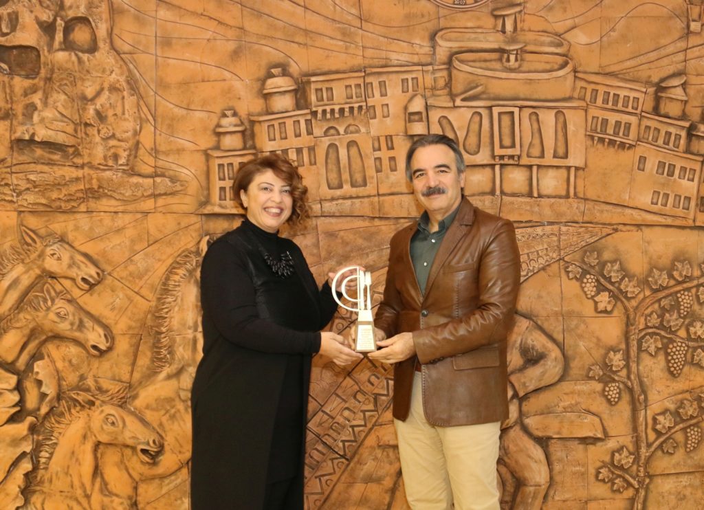 Rektör Prof. Dr. Mazhar Bağlı, Dekan Prof. Dr. Şule Aydın’ı makamında kabul etti.  Yarışmada elde ettikleri “En Favori Gastronomi Bölümü Bulunan Devlet Üniversitesi” ödülünü Rektör Prof. Dr. Bağlı’ya takdim eden Dekan Prof. Dr. Aydın, kendilerine vermiş oldukları desteklerinden dolayı teşekkürlerini dile getirdi.
