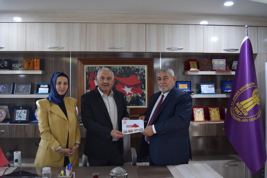 Tüm Nevşehirliler Federasyonu Başkanı Mustafa Şen ve Nevşehirliler Federasyonu Kadın Kolları Başkanı Tuğba Baylan, Nevşehir Esnaf ve Sanatkarlar Odaları Birliği Başkanı Mehmet Pınarbaşı’nı makamında ziyaret etti.