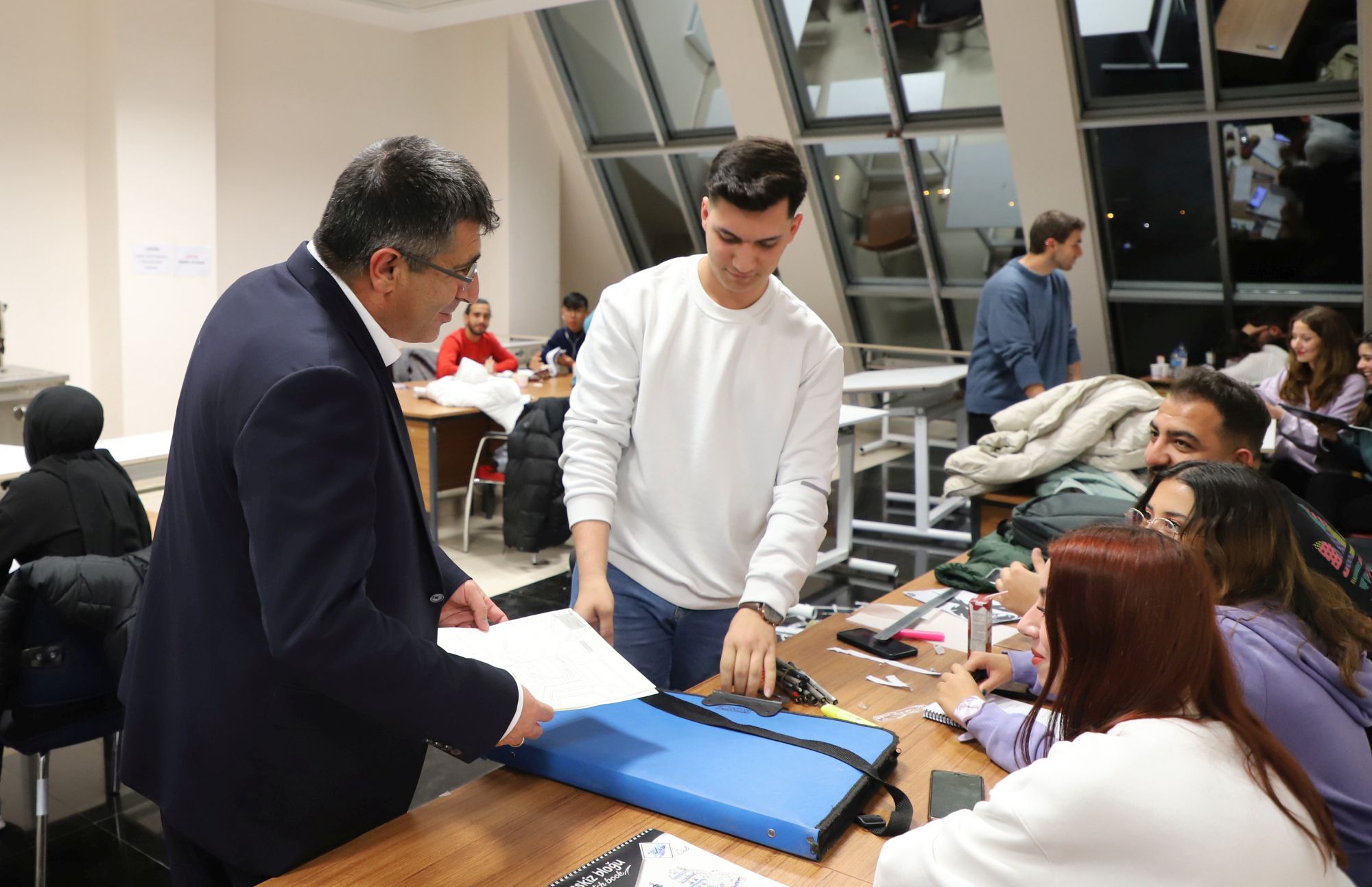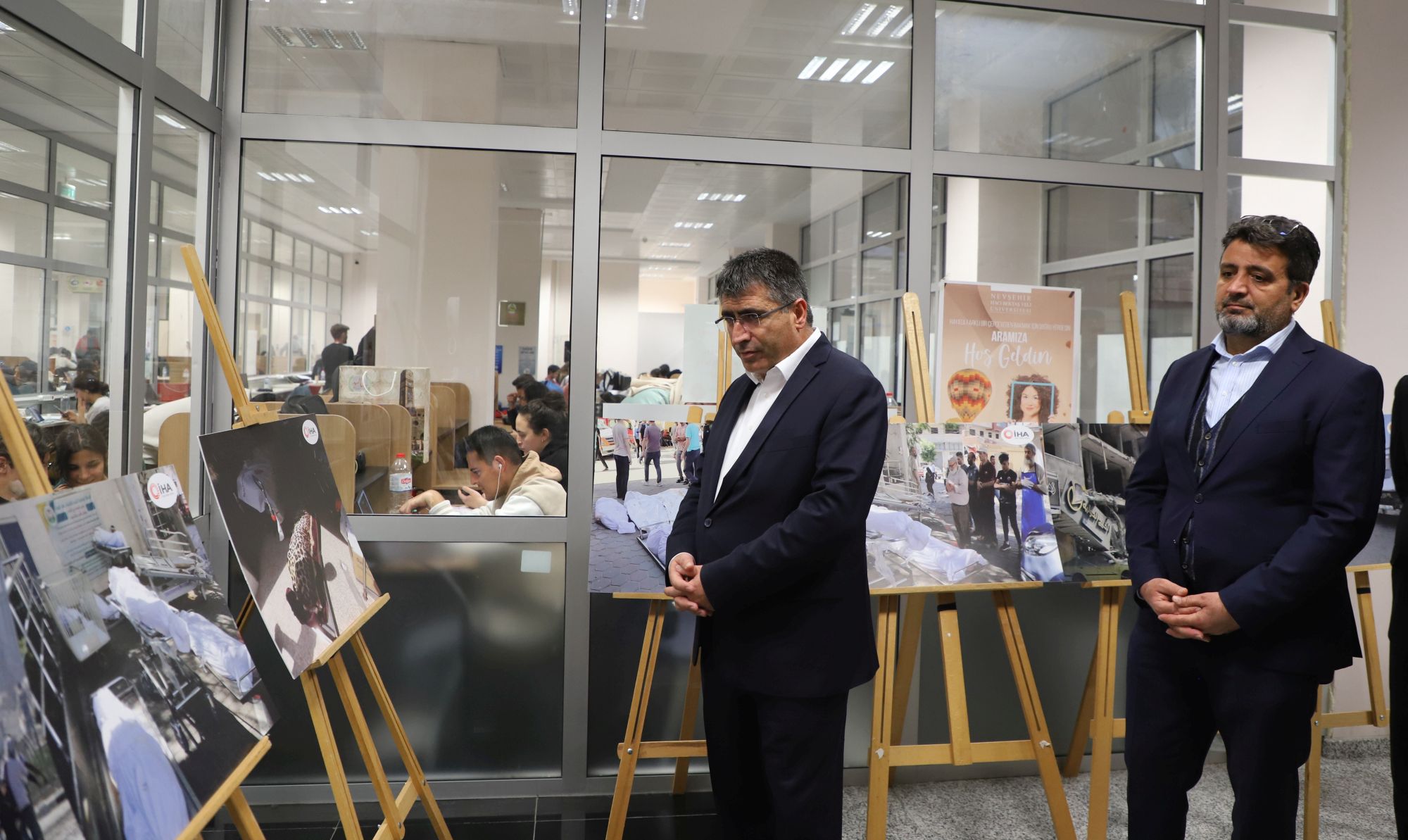 Sergi alanını gezen Rektör Aktekin daha sonra kütüphane içerisinde güz dönemi ara sınavlarına hazırlanan öğrencilerle bir araya gelerek kendilerine başarılar temennisinde bulundu.