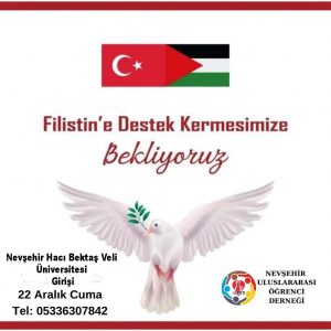 Nevşehir Uluslararası Öğrenciler Derneği (NUDER) tarafından Nevşehir Hacı Bektaş Veli Üniversitesi (NEVÜ)’de, “Filistin’e Destek Kermesi” düzenlenecek.