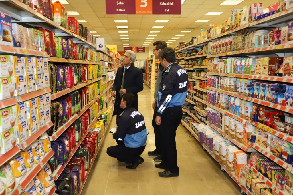 Zabıta ekipleri, beraberindeki Ticaret İl Müdürlüğü yetkilileri ile birlikte ziyaret ettikleri işyerlerinde başta fiyat etiketleri, son kullanma tarihleri ve ürün fiyatlarındaki değişikleri kontrol etti.