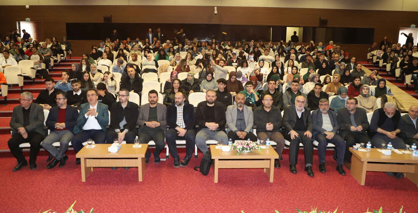 NEVÜ Vali Şinasi Kuş Kültür ve Kongre Merkezi’nde Kur’ân tilavetiyle başlayan söyleşiye; Nevşehir Belediye Başkanı Dr. Mehmet Savran, NEVÜ Rektör Yardımcısı Prof. Dr. Şahlan Öztürk, Rektör Danışmanları Prof. Dr. Adem Çatak ve Prof. Dr. Seydi Battal Gazi Karakoç ve NEVÜ akademik ve idari personeliyle öğrenciler katıldı.