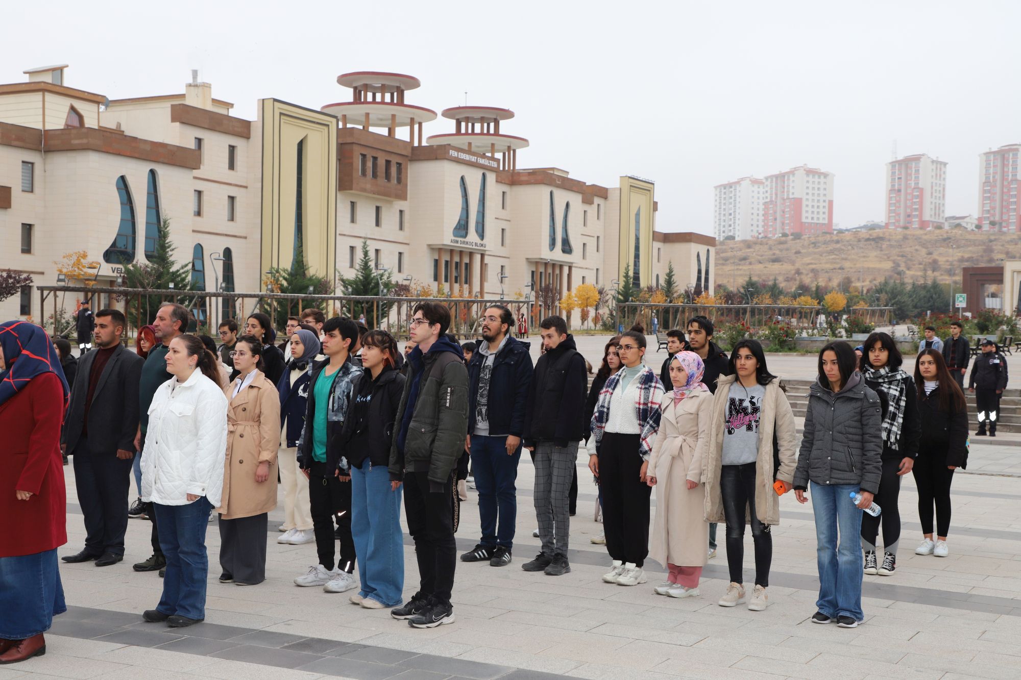 Rektör Prof. Dr. Semih Aktekin’in Atatürk heykeli önüne üniversitenin çelengini bırakmasıyla başlayan tören Gazi Mustafa Kemal Atatürk’ün ebediyete intikali olan saat 09.05’te, Atatürk, silah arkadaşları ve tüm aziz şehitler için iki dakikalık saygı duruşunun ardından İstiklal Marşı’nın okunmasıyla sona erdi.