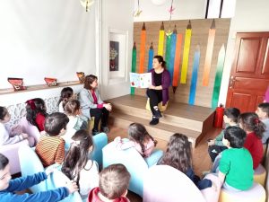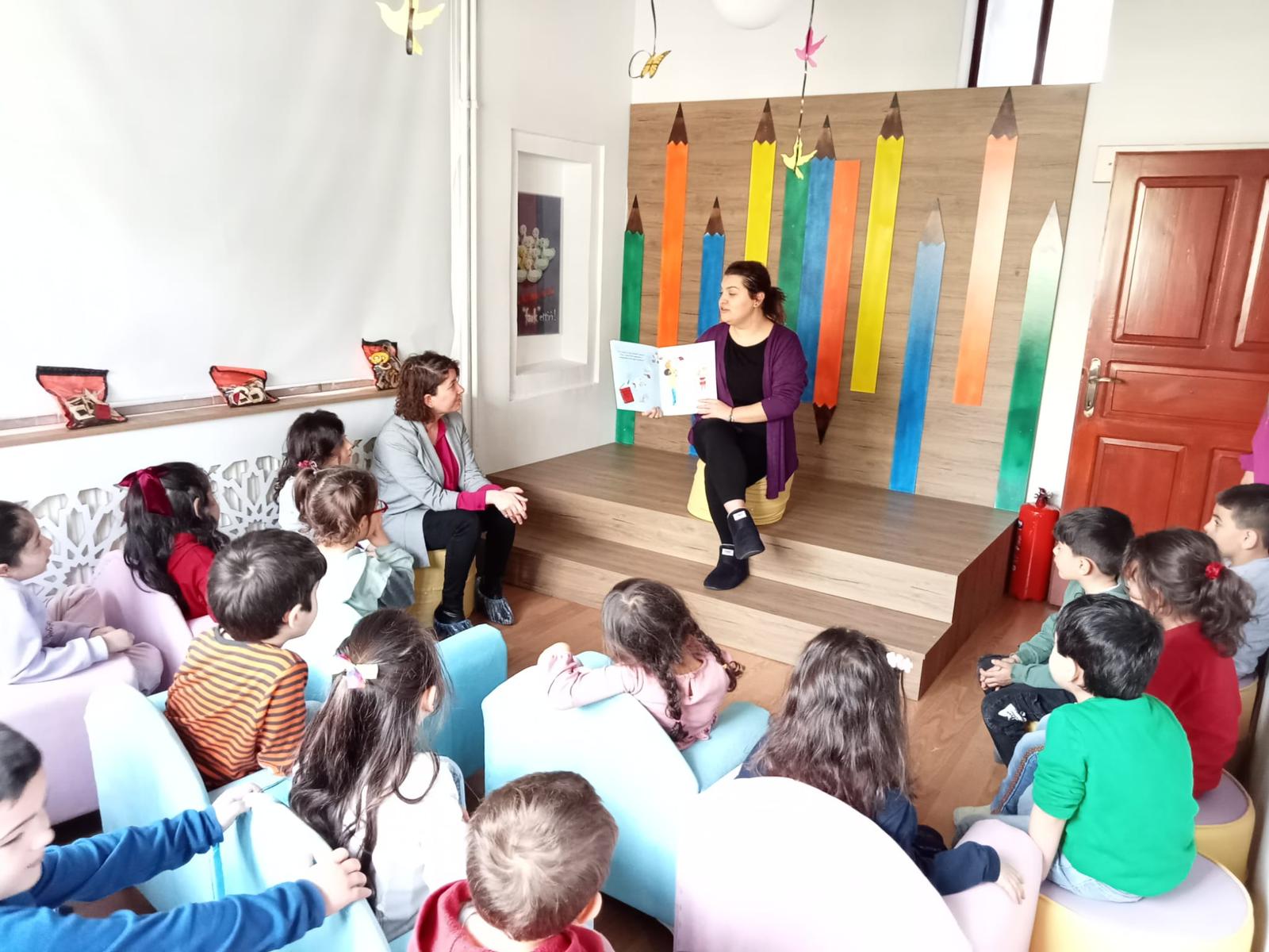 Gazi Ortaokulu ana sınıfı öğrencileri çocuk kütüphanesine geziye gittiler