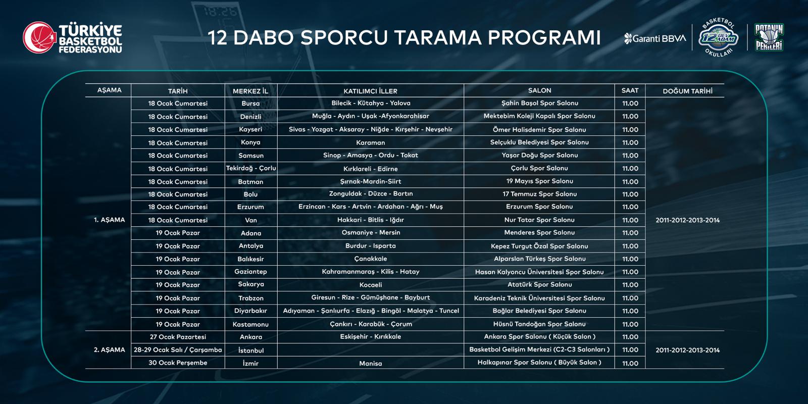 Yurt genelinde düzenlenecek 12 Dev Adam Basketbol Okulları (12 DABO) için basketbolcu süreci başladığı bildirildi.