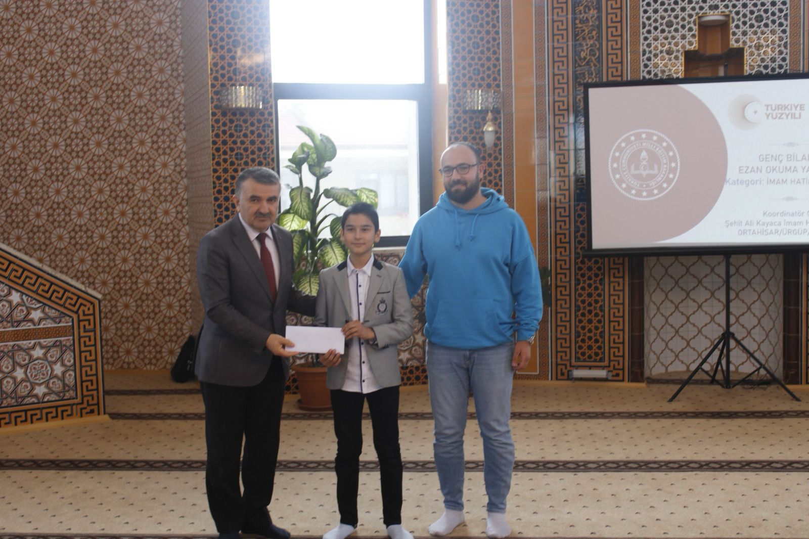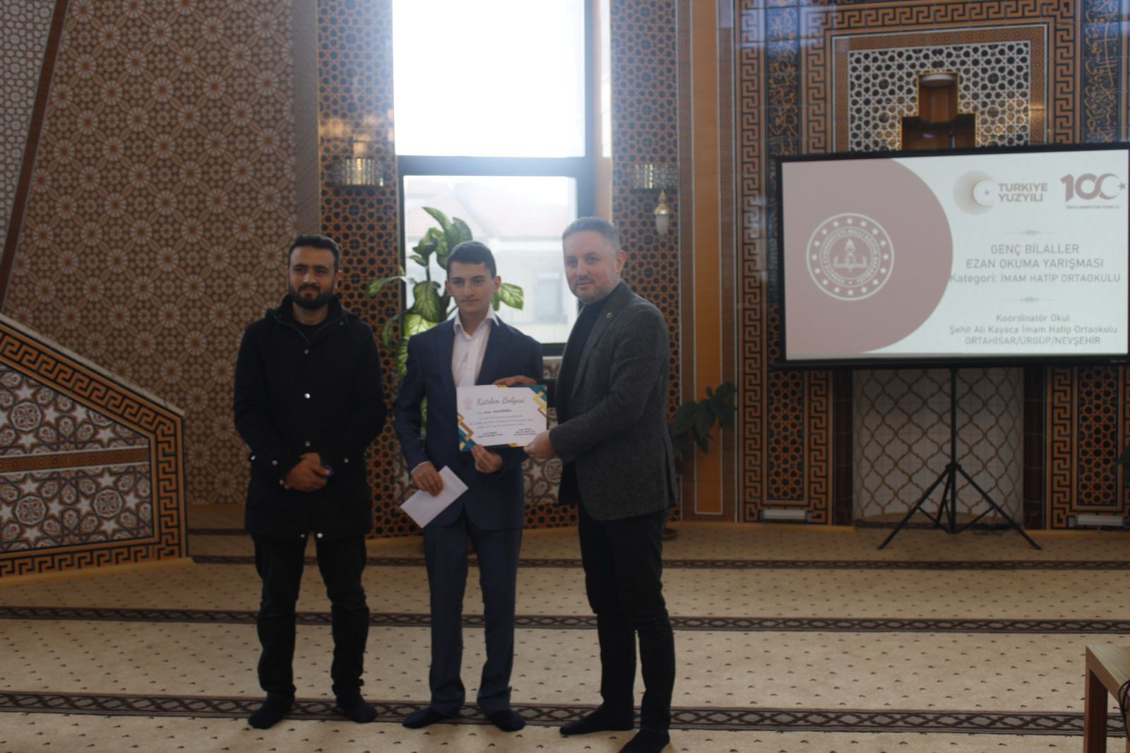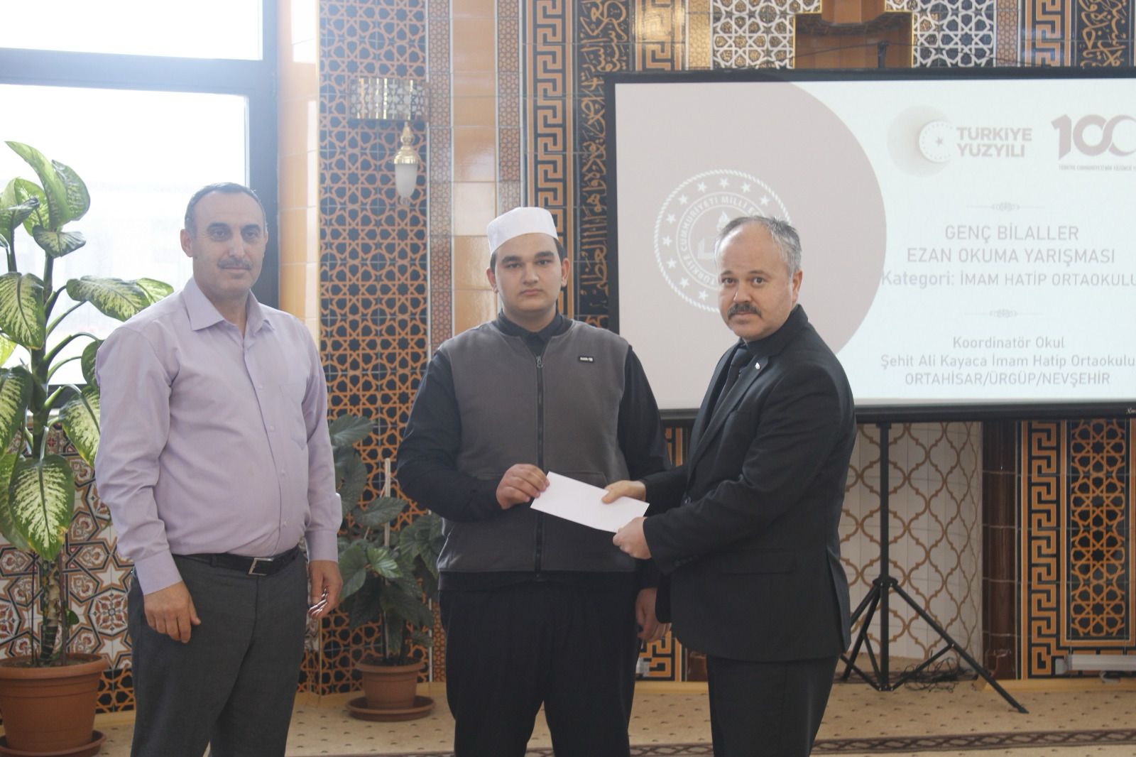 Anadolu İmam Hatip Liseleri ve İmam Hatip Ortaokulları arası ‘‘Genç Bilaller Ezan Okuma Yarışması’’ Nevşehir il finali Ürgüp Ortahisar Şehit Ali Kayaca İmam Hatip Ortaokulu koordinesinde gerçekleştirildi. İl Millî Eğitim Müdürü Yusuf YAZICI, Ortahisar Belediye Başkanı Mustafa ATEŞ, İl MEM Müdür Yardımcısı Murat SALTIK, Avanos İlçe Müftüsü Harun ÖZKAN, Ürgüp İlçe Müftüsü İsmail KARADAVUT, Ürgüp İlçe Milli Eğitim Müdürü Savaş ÖZDEMİR katıldı.