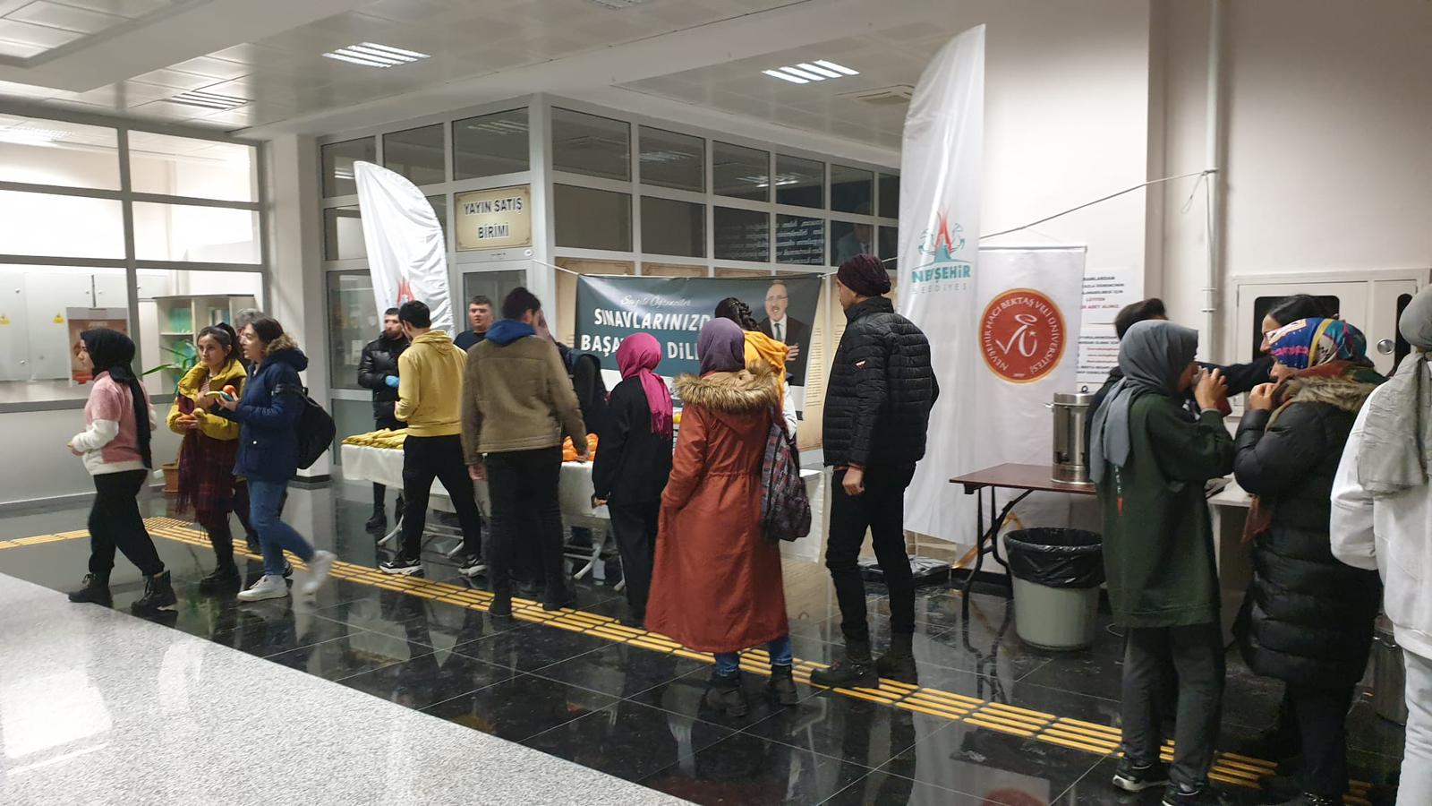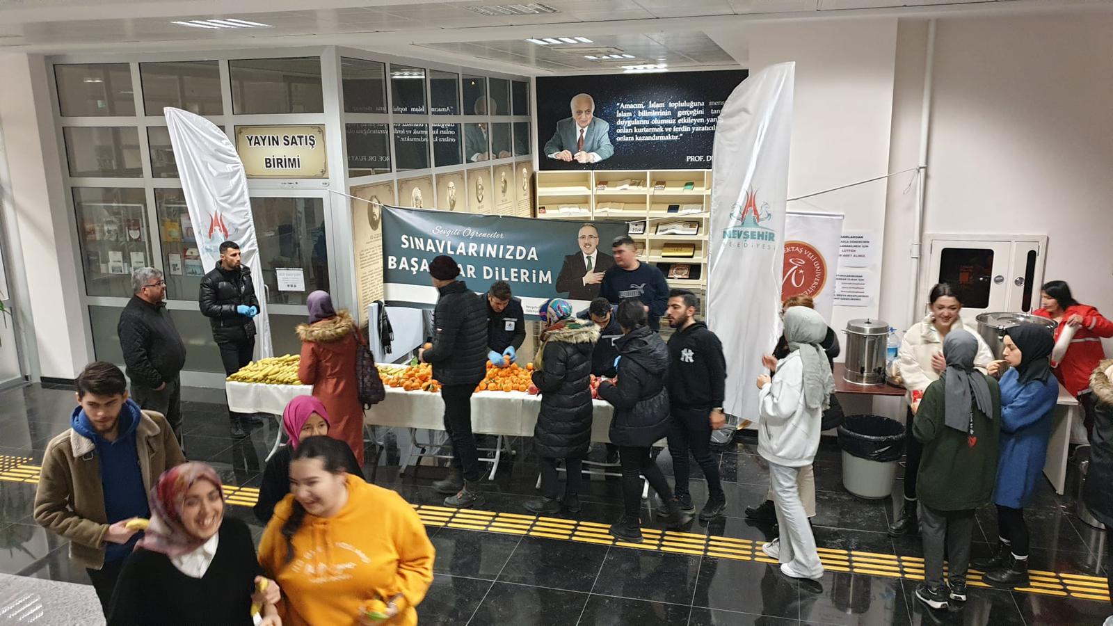 Nevşehir Belediyesi, 2022-2023 Eğitim Öğretim Yılı Güz Dönemi Final Sınavı haftası nedeniyle sınavlara hazırlanan Nevşehir Hacı Bektaş Veli Üniversitesi (NEVÜ) öğrencilerine çeşitli ikramlarda bulunuldu. Hoca Ahmed Yesevi Kütüphanesi’nde 10 gün boyunca açılan ikram standından her gün yaklaşık 600’ü aşkın öğrenci faydalandı.