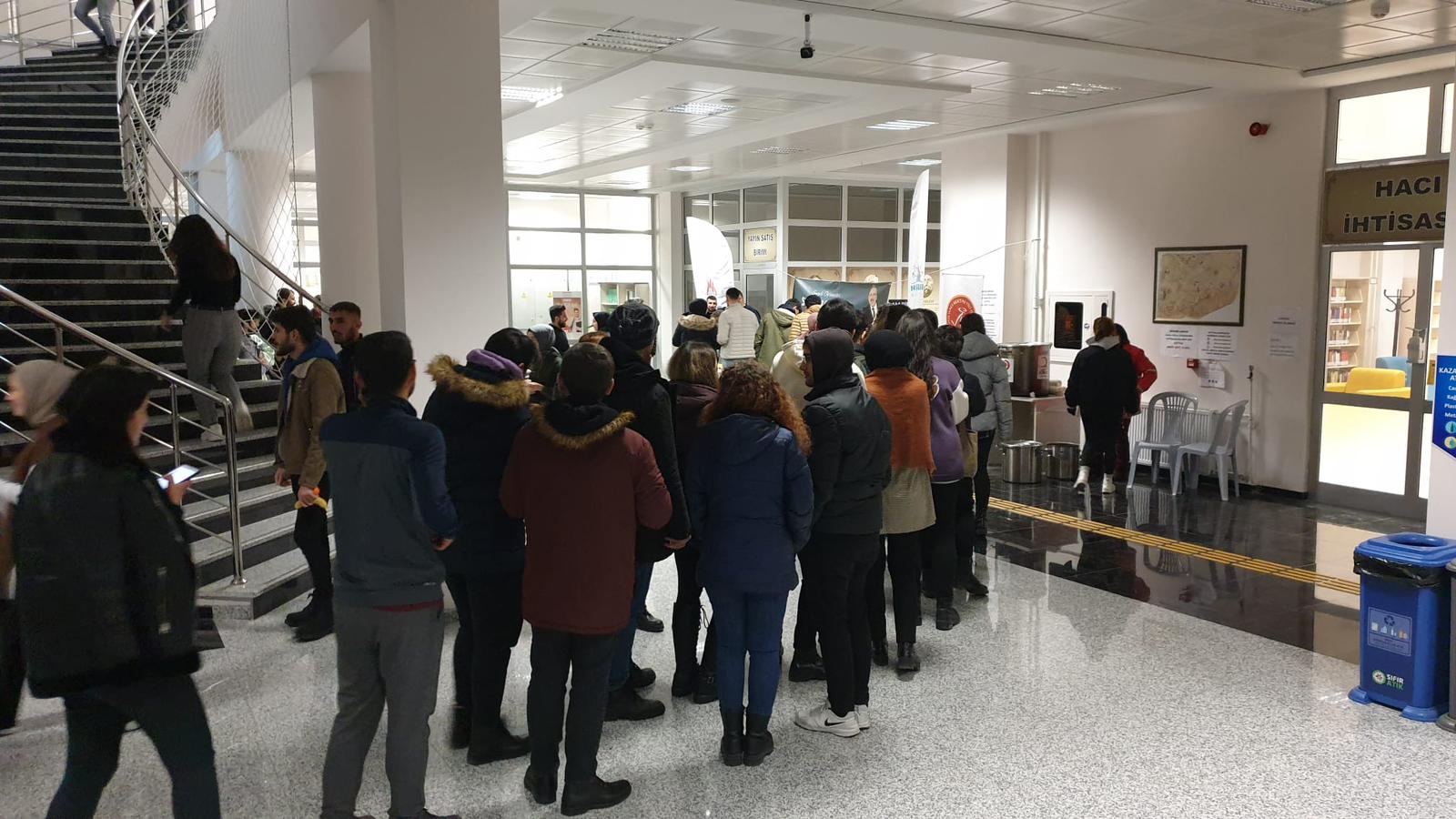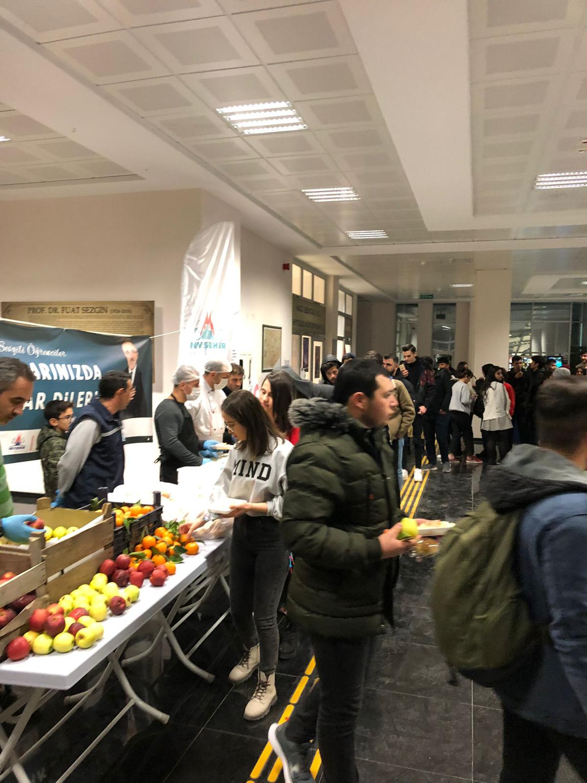 Nevşehir Belediyesi Gençlik ve Spor Hizmetleri Müdürlüğü tarafından NEVÜ Damat İbrahim Paşa Yerleşkesi içerisinde yer alan Hoca Ahmed Yesevi Kütüphanesi’nde güz dönemi yarıyıl final sınavlarına hazırlanan öğrenciler için açılan ikram standı bugün son kez kurulacak. İlk olarak 3 Ocak 2023 tarihinde açılan stant içerisinde her gün belediye görevlilerince öğrencilere meyve, nohut-pilav, çorba, bisküvi, çikolata, meyve suyu ve kahve ikramlarında bulunuldu.