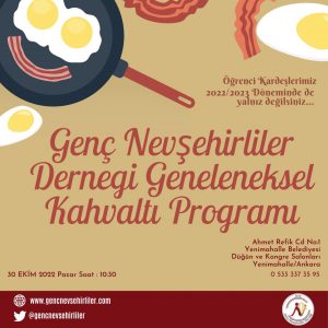 Genç Nevşehirliler Derneği tarafından geçtiğimiz senelerde devam ettirilen kahvaltı programları bu sene kaldığı yerden devam ediyor.