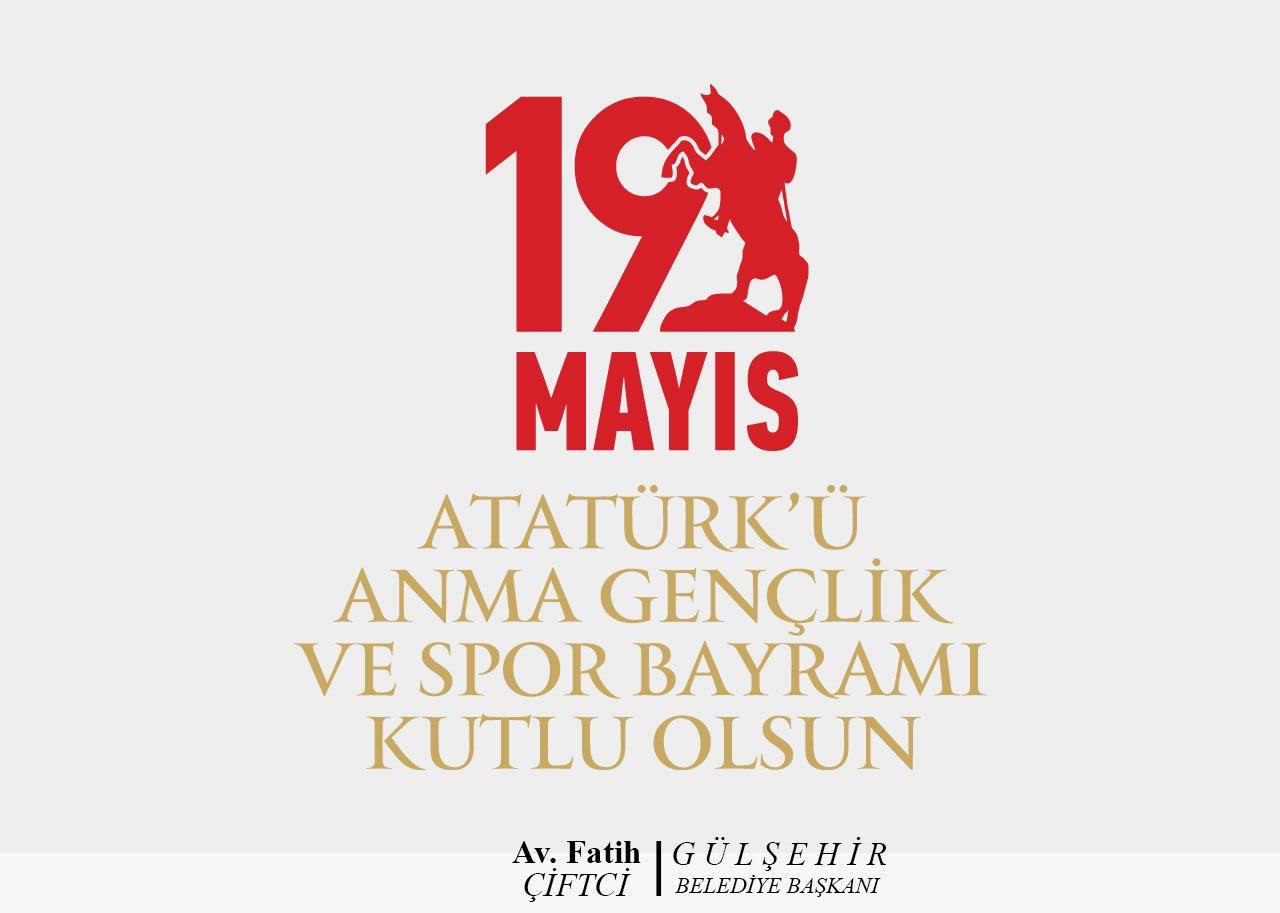 Gülşehir belediye Başkanı Av. Fatih Çiftçi, “Tarihin dönüm noktalarından biri olan 19 Mayıs 1919′un 104.yıl dönümüne ulaşmanın coşku ve heyecanını yaşıyoruz. 19 Mayıs Atatürk’ü Anma Gençlik ve Spor Bayramınız kutlu olsun” mesajını yayınladı.