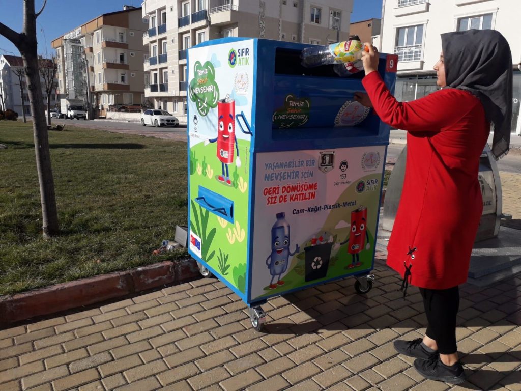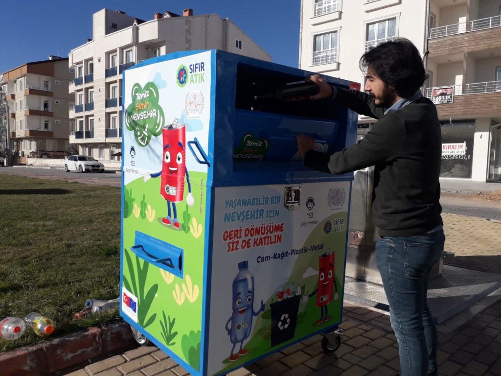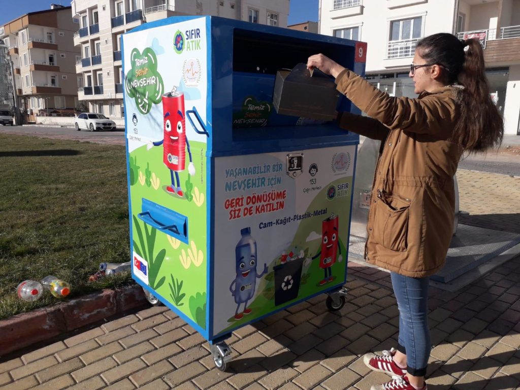 Bu amaçla Nevşehir Belediyesi ile Almanya’nın Neuss Belediyesi’nin ortaklaşa yürüttüğü AB Projesi kapsamında, Nevşehir’in Güzelyurt, 2000 Evler ve 15 Temmuz Mahallelerine Akıllı Geri Dönüşüm Kutuları yerleştirildi.