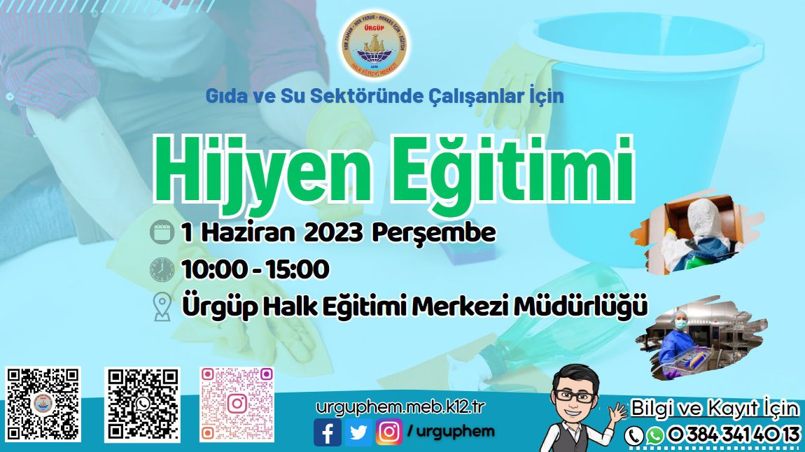 Ürgüp Halk Merkezinde 1 Haziran 2023 Perşembe günü gıda ve su sektöründe çalışanlar için hijyen eğitimi kursumuz yapılacak.