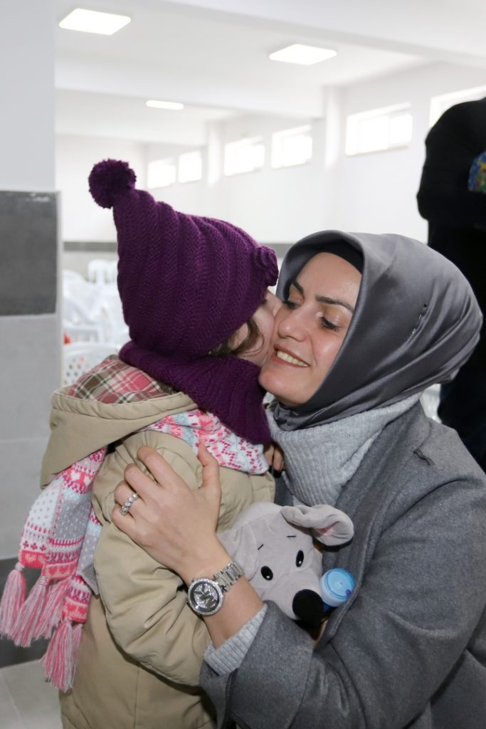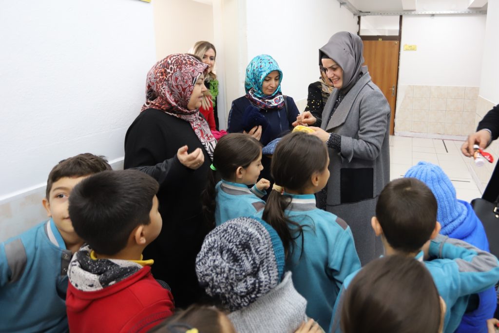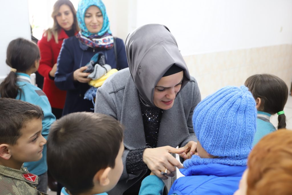 Kendisine eşlik eden gönüllü anneler ile birlikte ziyaret ettiği 17 ayrı okulda öğrencilerle bir araya gelerek örülen el emeği göz nuru atkı ve bereleri çocuklara hediye eden Arı, onlarla bir süre vakit geçirerek mutluluklarına ortak oldu.