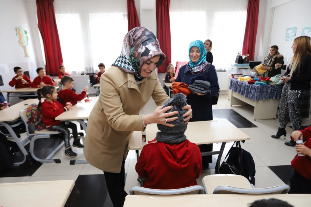 Nevşehir Belediye Başkanı Rasim Arı’nın eşi Melek Arı’nın öncülüğünde başlatılan kampanya sayesinde gönüllü annelerin ördüğü yüzlerce atkı ve bere 17 ayrı okulda 750 öğrenciye dağıtıldı.