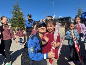 Uçurtmaların rengarenk süslediği gökyüzü, hem Cumhuriyet’in coşkusunu hem de geleceğin teminatı olan çocukların neşesini yansıttı. Polis ekipleri, çocuklarla birlikte uçurtma uçurarak, onların sosyalleşmesine katkı sundu ve toplum–polis ilişkisini güçlendirmeyi amaçladı.