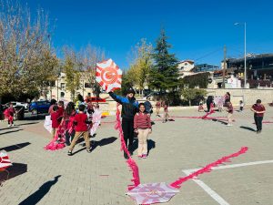 Nevşehir’in Göreme beldesinde, Cumhuriyet Bayramı’nın 102’nci yılı renkli görüntülerle kutlandı. Toplum Destekli Polislik Şube Müdürlüğü tarafından düzenlenen etkinlikte, çocuklar polislerle birlikte uçurtmalarını gökyüzüne bırakarak Cumhuriyet coşkusunu doyasıya yaşadı.
