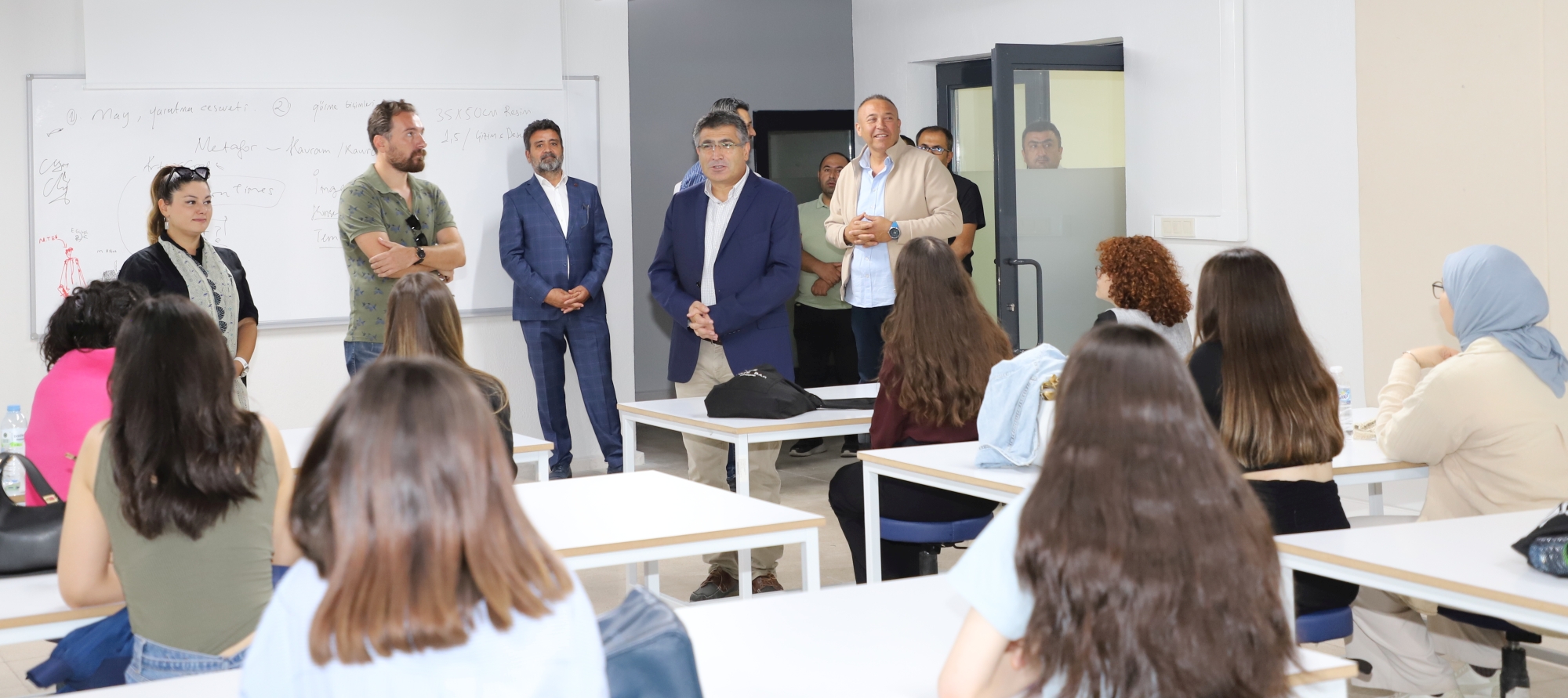 Bölüme ait derslikler, stüdyo, bilgisayar laboratuvarı ve diğer çalışma ve sosyal alanlarda incelemelerde de bulunan Rektör Aktekin, ayrıca öğrencilerle bir araya gelerek kendilerinin görüş ve taleplerini dinledi.