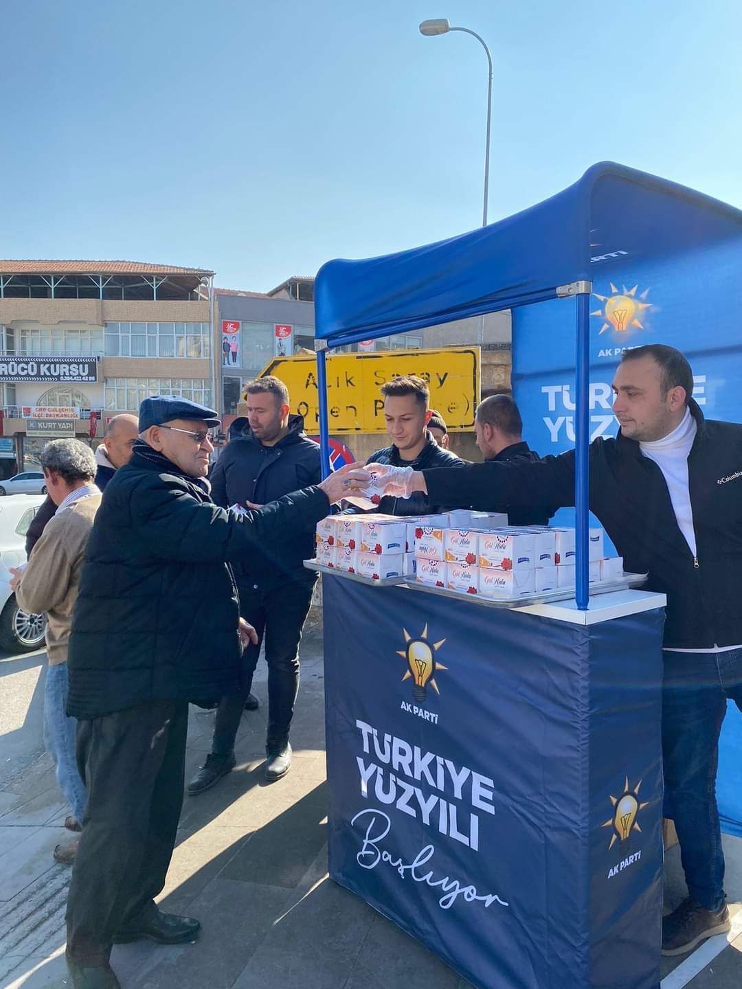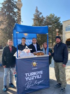 AK Parti Gülşehir Gençlik Kolları Başkanı Yusuf Bozan, yönetimi kurulu üyeleri ve AK Partili gençler ilçede cami çıkışı cemaate kandil simidi dağıttı.