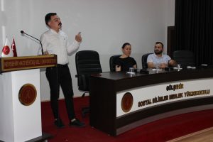 Etkinlik, Özel Güvenlik ve Koruma Programı Kariyer Günleri Konferansı ile devam etti.  Konferansa Gülşehir MYO mezunu ve Gelir İdaresi Başkanlığı’nda Güvenlik Görevlisi olarak atanan ve şu an Gelir Uzmanı olarak görev yapan Bekir Gökbaş konuşmacı olarak katıldı. Gökbaş, güvenlik görevlilerin meslek hayatlarında karşılaşabilecekleri durumlar hakkında genel bilgiler verdi. Kendi kariyer sürecinden bahsettikten sonra öğrencilerden gelen soruları cevapladı. Konuşmasının ardından Bekir Gökbaş’a teşekkür belgesi takdim edildi.