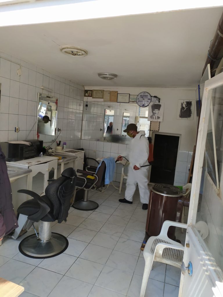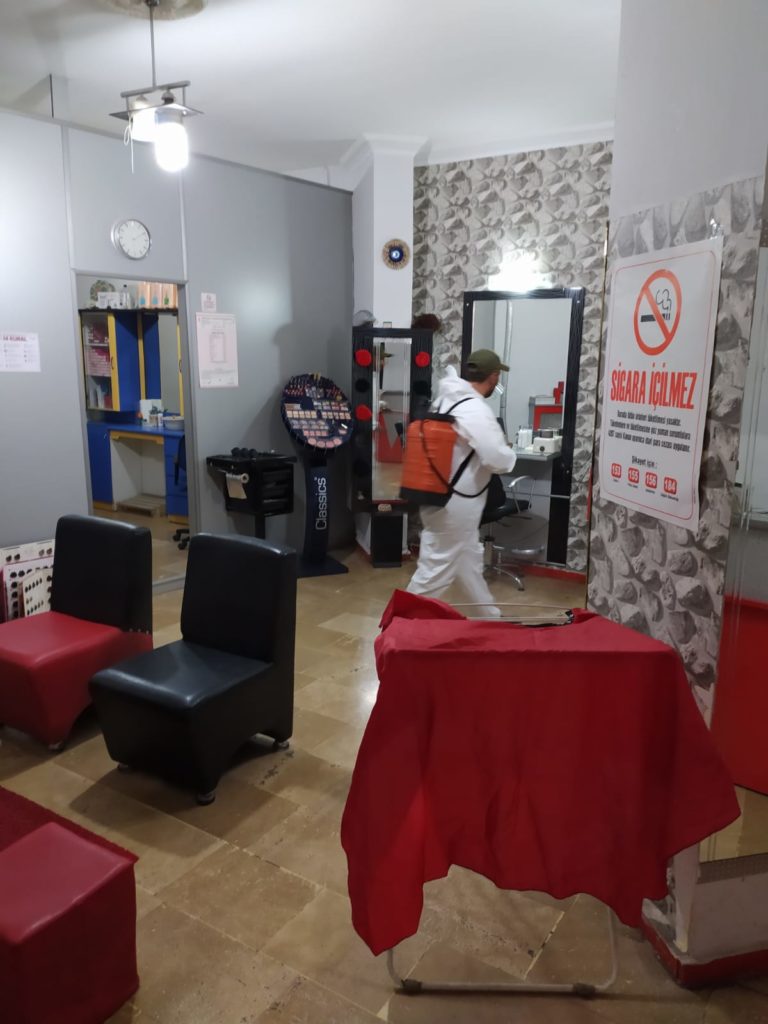 Gülşehir’de 11 Mayıs Pazartesi gününden itibaren yeniden faaliyete geçecek olan berber ve kuaförlerde dezenfekte çalışması yapıldı.