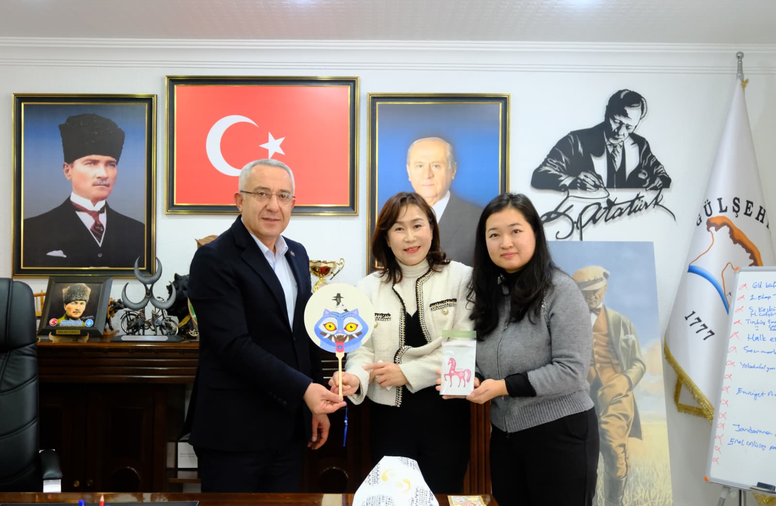 Güney Kore Cumhuriyeti Gyonggi Eyaleti Millî Eğitim Bölge Müdürlüğü’nden gelen eğitim heyeti, Gülşehir İlçe Millî Eğitim Müdürlüğü koordinesinde yürütülen eğitim ortaklığı ve kardeş okul proje tanıtımları kapsamında Gülşehir Belediye Başkanı Erkan Çiftci’yi makamında ziyaret etti.