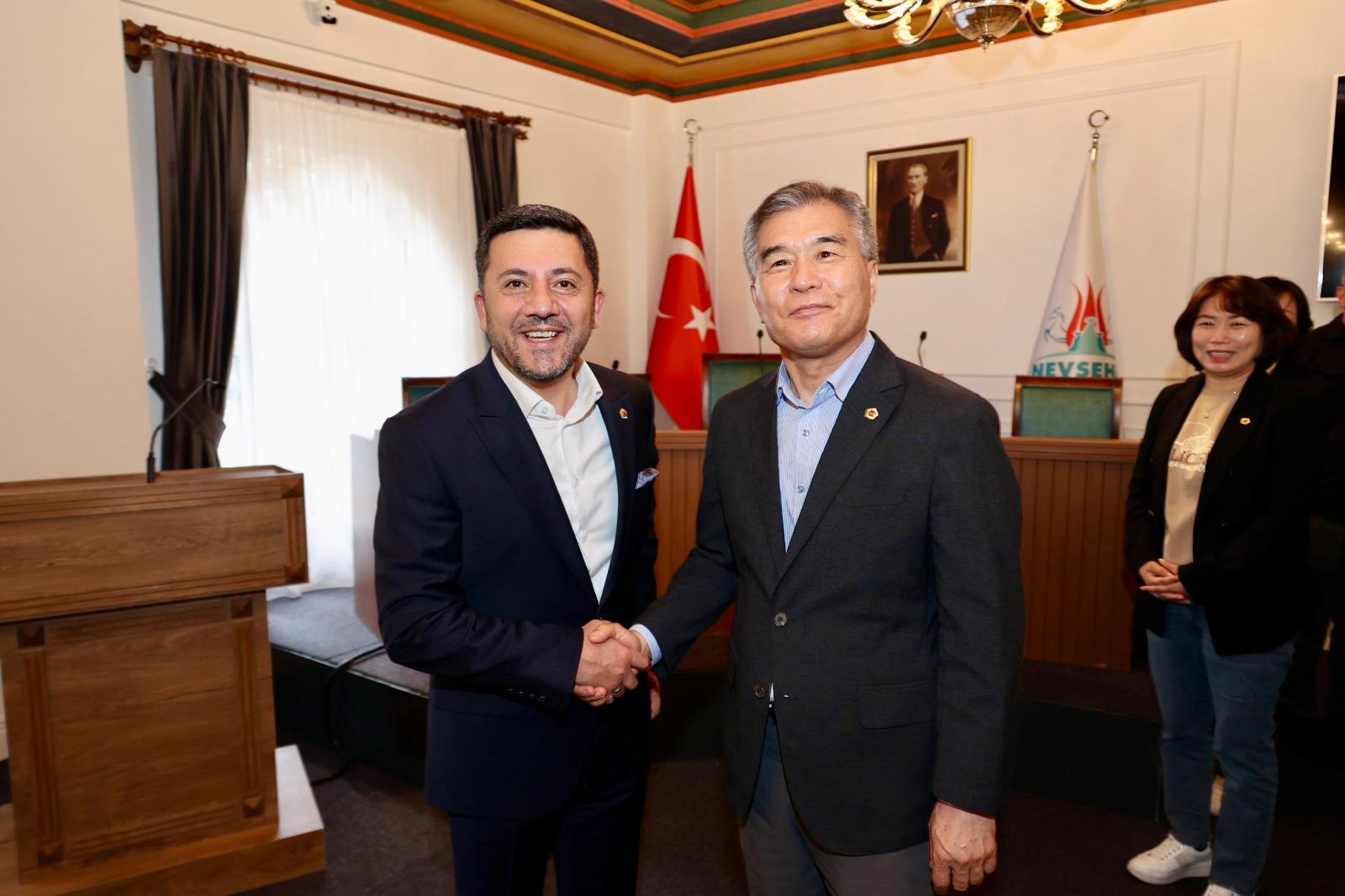 Ankara’nın kardeş kenti Seul’den gelen, Seul Belediyesi Meclis Başkanı Hyeonki Kim ile belediye bürokratlarından oluşan Güney Kore heyeti, Nevşehir Belediye Başkanı Rasim Arı’yı ziyaret etti.