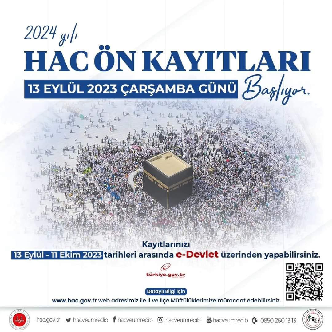 Bu kutlu yolculuğa çıkmaya niyet eden ve ilk defa müracaat edecek tüm vatandaşlarımız ön kayıt işlemlerini 11 Ekim 2023 tarihi mesai bitimine kadar e-Devlet üzerinden yapabilecekler.