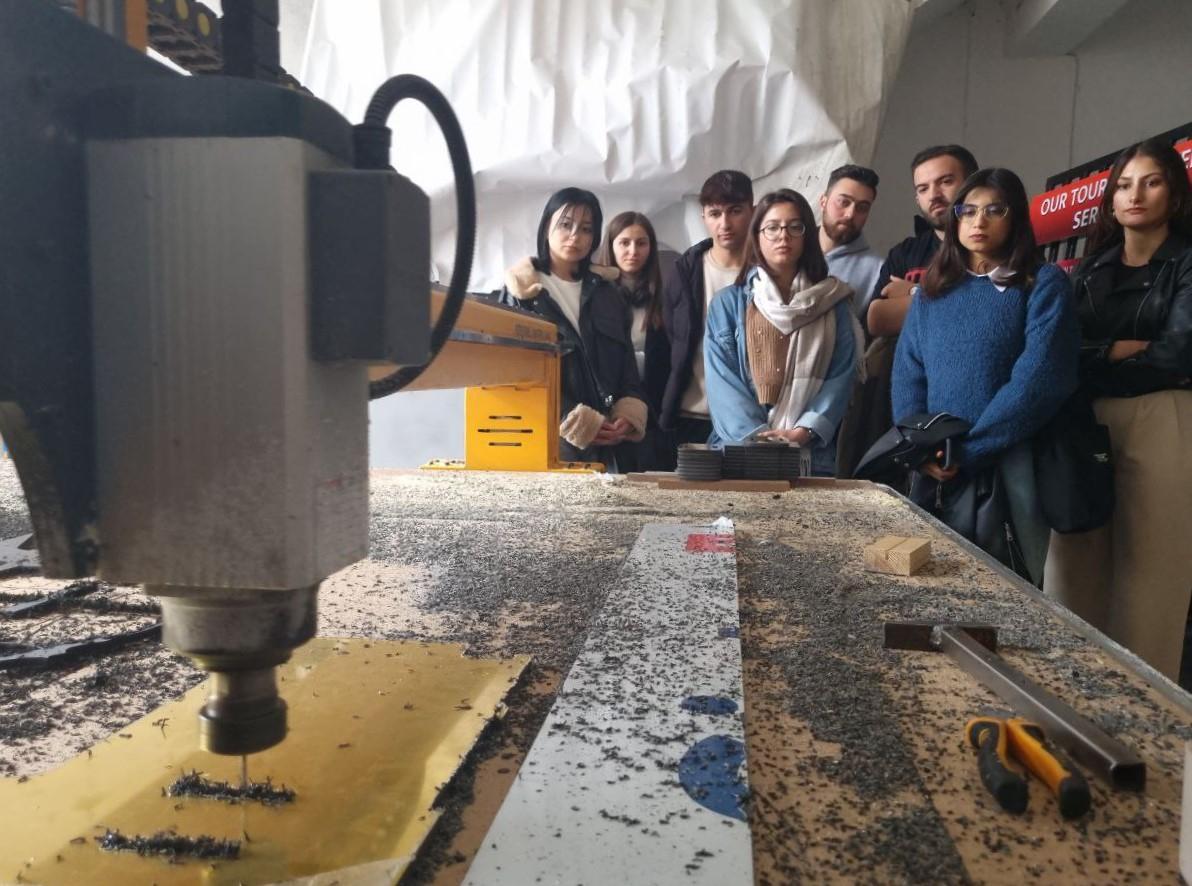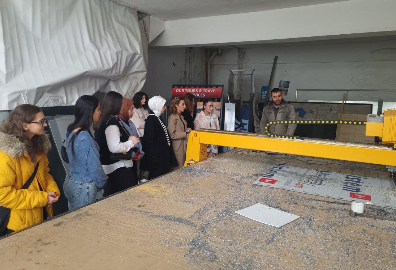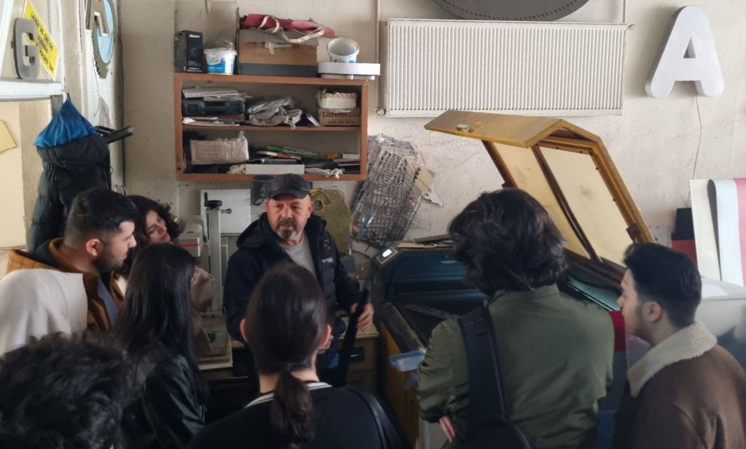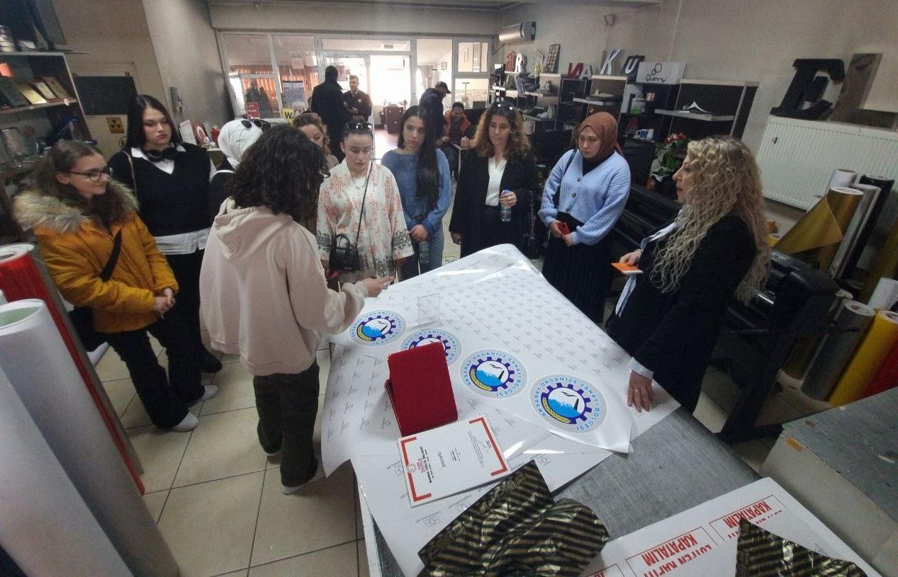 Ajansta yapılan folyo kesim, promosyon ürün baskısı, cnc, lazer markalama, etiket tasarımı, bas-kes, kutu harf, araç kaplama, plaket, kompozit, isimlik ve benzeri yapılan uygulamalar ile farklı kâğıt ve branda türleri üzerine yapılan çalışmalara ait örnekleri inceleme fırsatı da bulunan öğrencilere ayrıca işletme bünyesinde yer alan metal ve uygulama atölyelerinde de baskı aşaması tamamlanmış çalışmaların kullanıma hazır hale getirilme sürecinin her aşaması gösterildi.