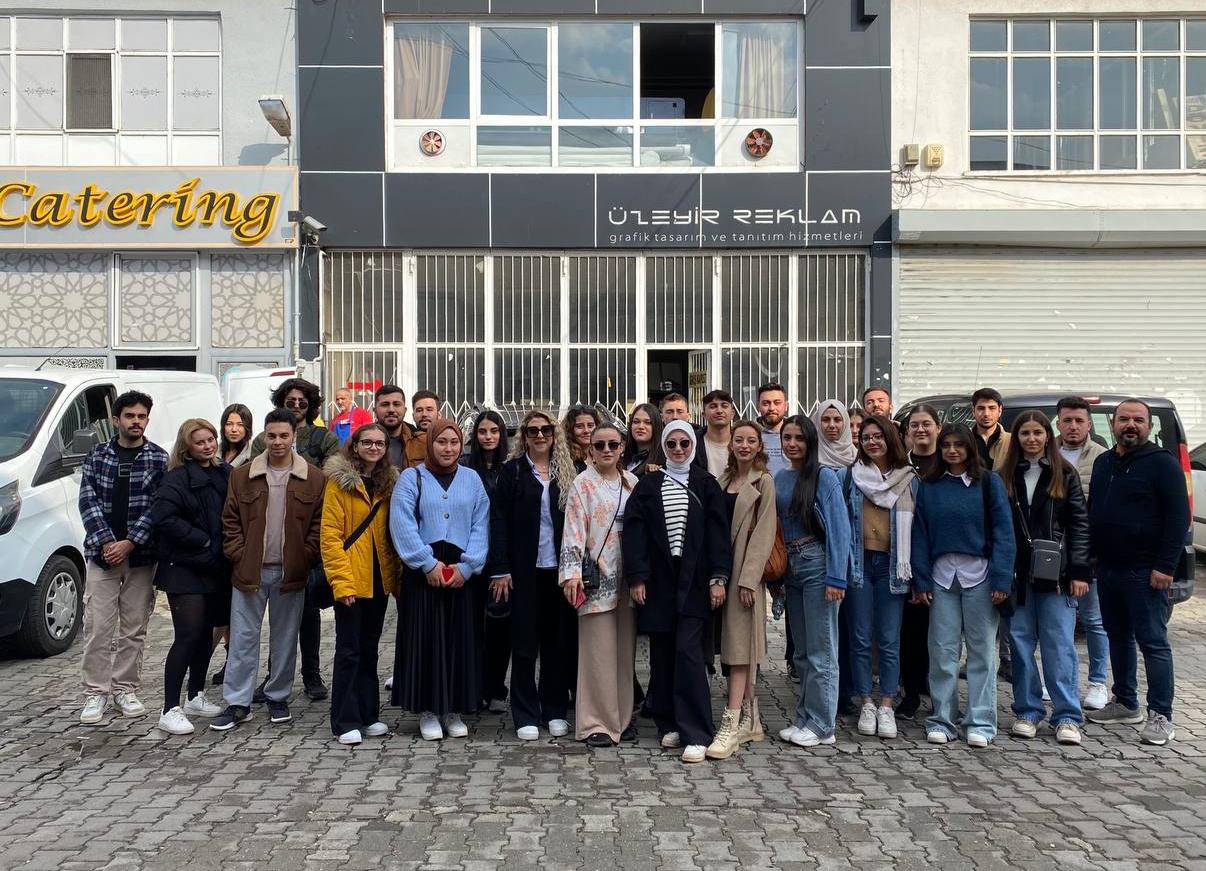 Öğr. Gör. Gürsoy Şeref ve Öğr. Gör. Betül Müezzinoğlu’nun koordinatörlüğünde düzenlenen teknik gezide ajansta görevli grafik tasarımcıların hazırladıkları tasarımların baskıya hazırlık sürecini yerinde uygulamalı olarak görme fırsatı bulan öğrenciler, bir grafik tasarımcı tarafından yapılan çalışmaya göre baskı malzemesinin kâğıt, branda, folyo vb. olarak belirlenmesinin önemi ve gerekliliği konularında bilgilendirildi.