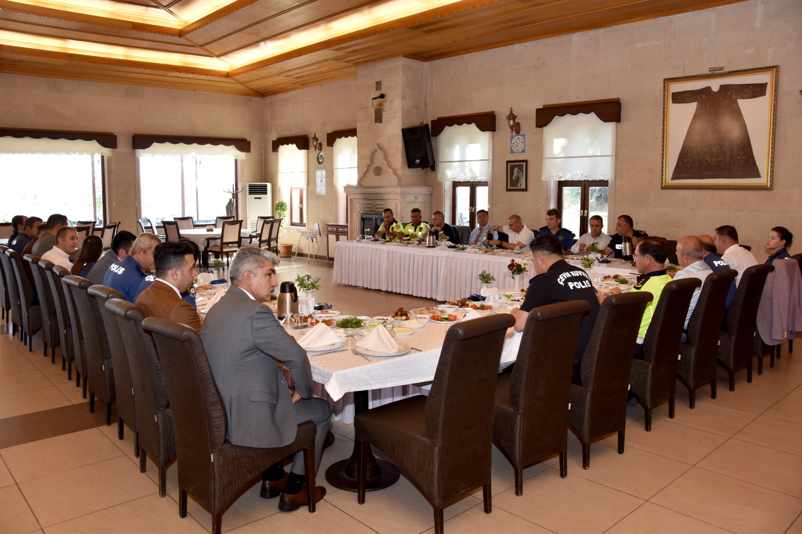 Nevşehir İl Emniyet Müdürü Ali Loğoğlu, 2024 yılı Hacıbektaş Veli Anma Etkinlikleri kapsamında alınan tedbirlerle ilgili olarak İl Emniyet Müdür Yardımcıları ve rütbeli personeli ile birlikte kahvaltı programında değerlendirme toplantısı yaptı.