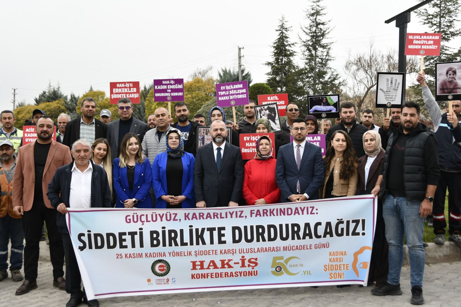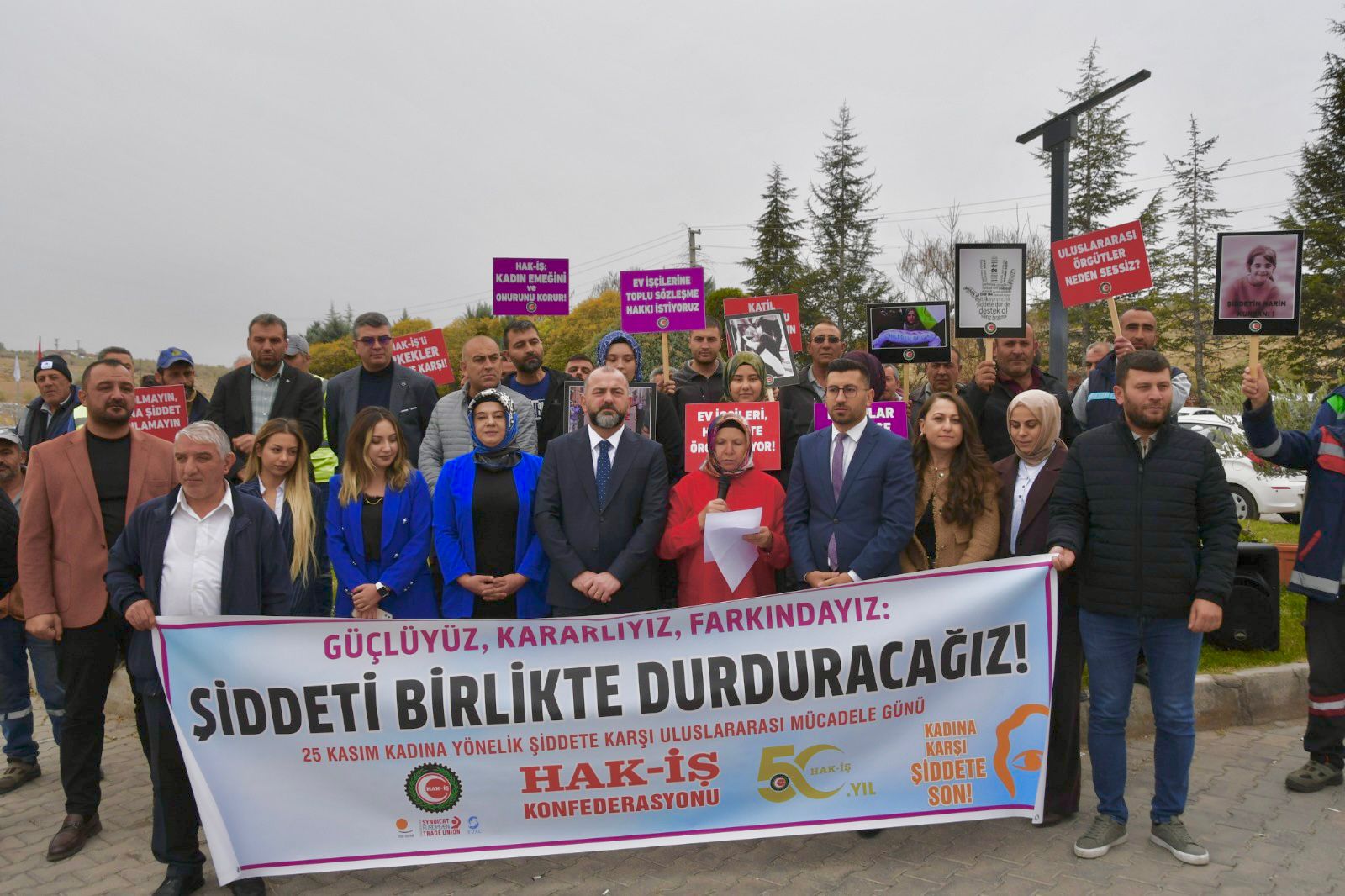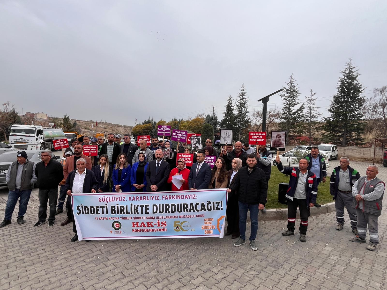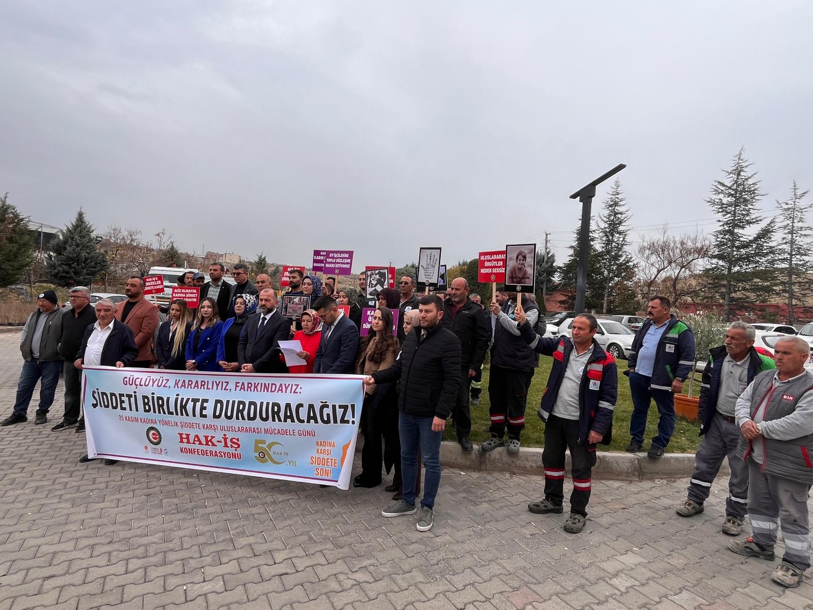HAK-İŞ Konfederasyonu, 25 Kasım Kadına Yönelik Şiddete Karşı Uluslararası Mücadele Günü kapsamında 81 ilde eş zamanlı açıklama yaparak kadına yönelik şiddete karşı kararlı duruşunu bir kez daha vurguladı.