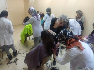 Usta Öğretici Serap Dalkılıç’ın önderliğinde Nevşehir KYK Kız Yurdunda konaklayan depremzede bayanlara yönelik düzenlenen ücretsiz saç kesimi uygulamasında 105 bayanın saç kesimi gerçekleştirildi.