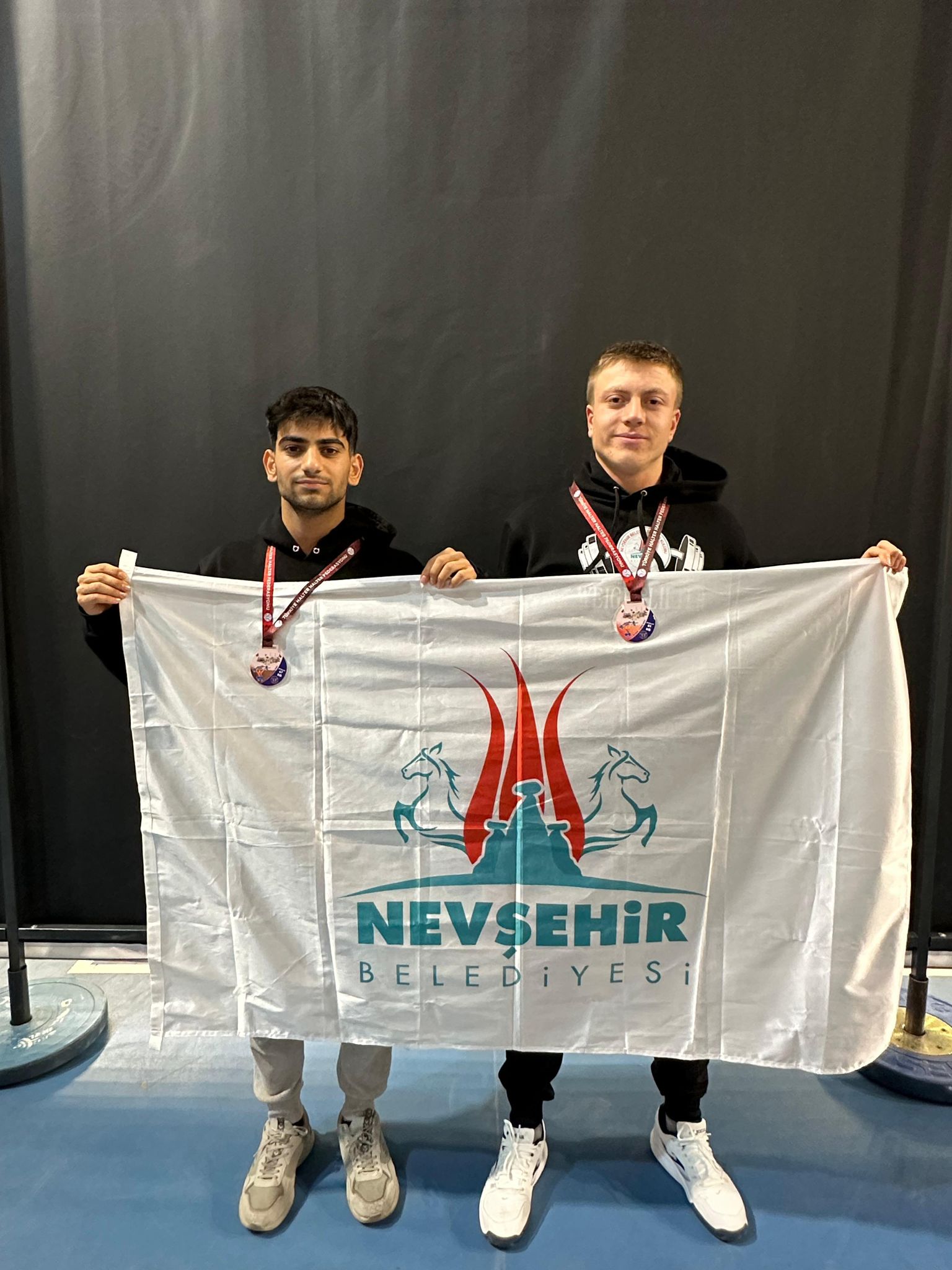 Nevşehir Belediyesi Gençlik ve Spor Kulübü Halter Takımı sporcularından Eray Çaylak ve Serdar Benli, Gençler Ferdi Türkiye Halter Şampiyonası’nda 67 ve 81 kg kategorilerinde üçüncü olarak bronz madalya kazandı