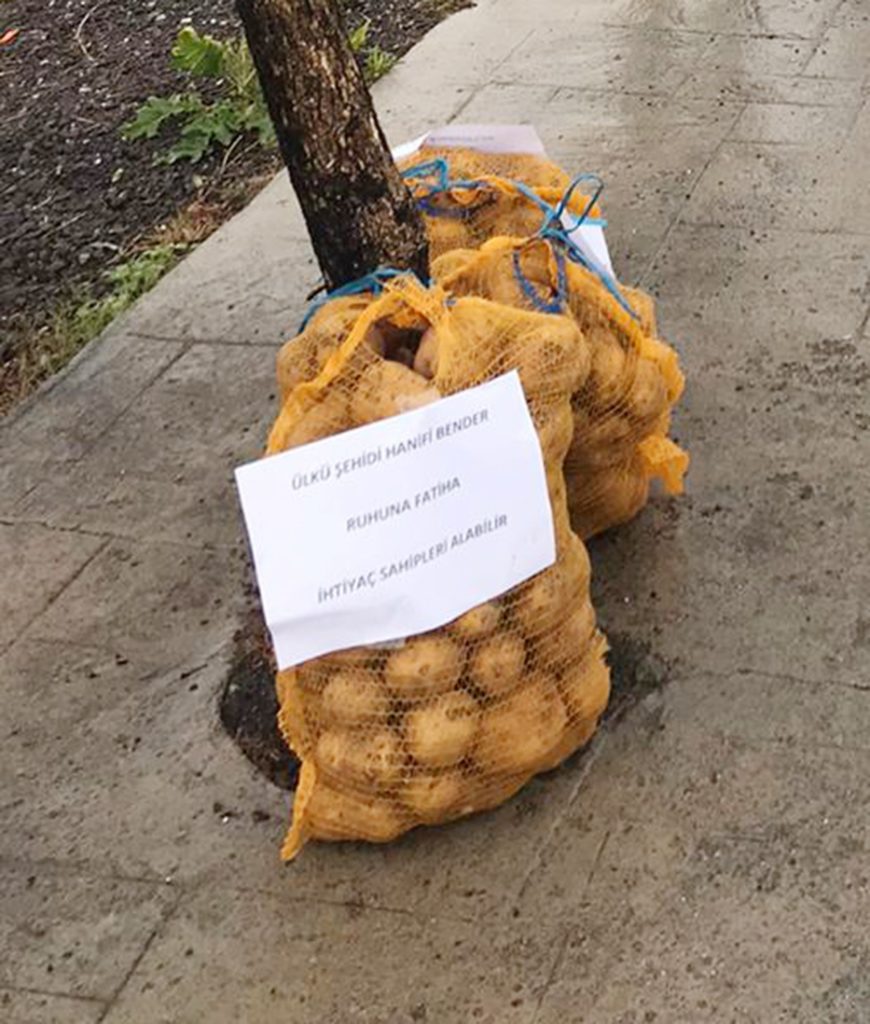 Yardımlara yine şehit isimleri yazıldı. Ancak, gizemli hayırsever bu sefer ki dağıttığı yardım paketlerine Ülkücü şehitlerin isimlerini verdi.