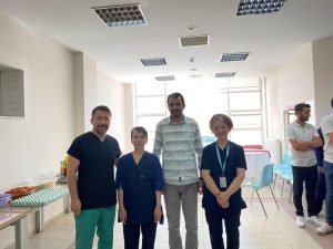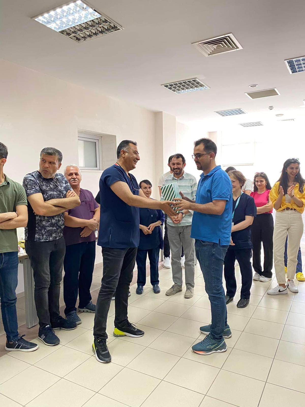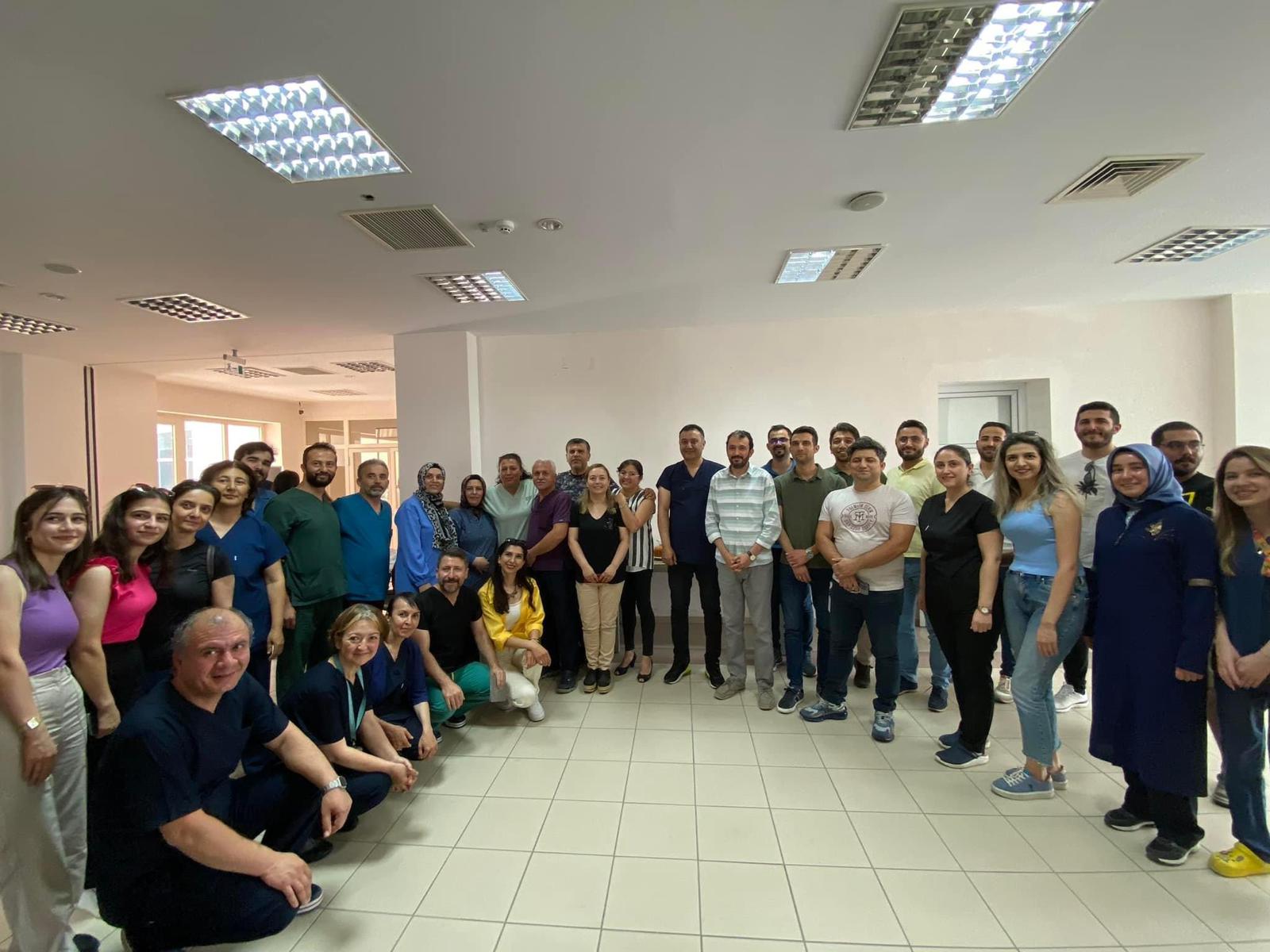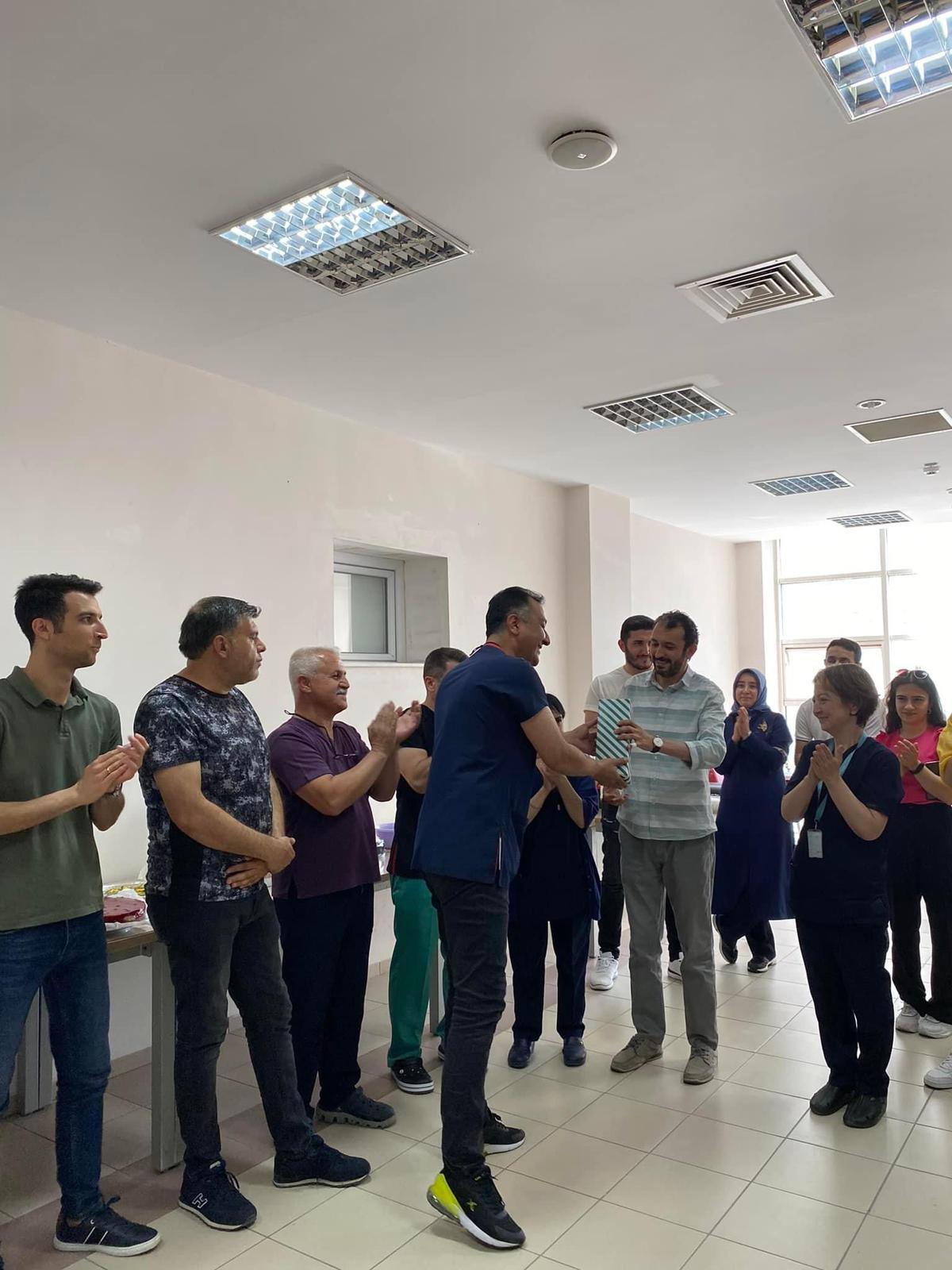 Nevşehir Devlet Hastanesi’nin acil servisinin 3. seviye acil servis olarak tescillenmesi münasebetiyle hastane yönetimi ve acil servis çalışanları biraraya geldi. Hastane başhekimi Uzm.Dr. Macit Yalçın, acil servisin hastanedeki hasta yükünün yüzde 20-30’unu karşılayarak çok önemli bir hizmeti yerine getirdiğini vurguladı ve hem acil hastalara verdikleri hizmetten dolayı hem de acil servisin üçüncü seviyeye yükseltilmesinde katkılarından dolayı acil servis çalışanlarına teşekkür etti. Ayrıca acil serviste ciddi bir tadilat yaparak fiziksel mekanda çok büyük iyileştirmeler yaptıklarını, bu iyileştirmelere ile daha uygun ortamlarda çalışmalarına olanak sağlandığını vurgulayan Başhekim Yalçın, amacımız acil serviste hizmet kalitemizi en üst seviyeye çıkarmaktır dedi. Toplantının sonunda acil servis sorumlularına hediyeler taktim edildi.